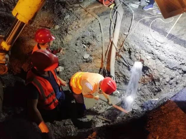 抢修处为200铸铁主管道漏水,涉及六个小区两千多户,如果停水进行维修有多户居民将受到影响,加上此处正是小区建设中,经过与开发公司沟通与协商决定夜间进行抢修。官网运营中心主任袁斌决定在确保安全的基础上,不停水进行抢修。虽然带水作业具有一定的施工难度,但是只要按照预先准备好抢修预案进行操作一定能圆满完成抢修任务。在开挖的过程中,抢修人员明确分工、责任到人,当挖掘到一定程度时,自来水迅速冒出地面,大功率的综合泵站起到了决定性的作用。加上精良的挖掘设备、精干的抢修队伍,经过周密部署,严把施工安全,很快找到漏点。经过6个小时的努力奋战圆满完成抢修任务。本次维修不仅挽回了暗漏造成的经济损失而且提升了小区的供水压力,还得到了附近居民的高度赞扬。
