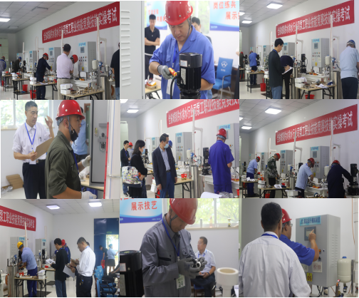 本次竞赛分理论考试和技能实操考试两部分,理论考试中选手们沉着冷静;技能实操考试中选手们纯熟的运用工具,拧螺丝、接法兰、连管件,应对自如;监督员忠于职守,监督到位;裁判们恪尽职守,公平公正;整个竞赛过程紧张有序。