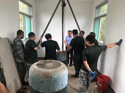 近日,济南市清源水务集团有限公司下发连续强降雨预警,鹊山水库管理处下定决心抢在暴雨前彻底改造设备。生产科和检修职工在管理处领导的带领下,经过两天两夜的艰苦奋战,先后完成了供电线路的架设、两台旧式轴流泵的拆解、两台新泵安装调试的工作。