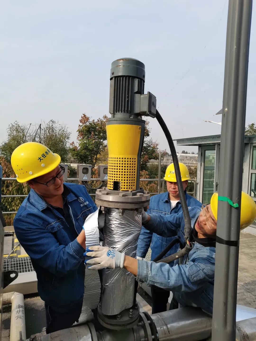 二、设备维护,早行动。加强设备设施保温保养,制定详实可行的检修计划,各单位对重点设备管路253处做了维护保养和保温措施。对增压泵、反冲洗过滤器、砂水分离器、压榨机等关键设备做好全面检查,重要设备确保备用机处于良好待机状态,可随时切换。对加药管、自来水管、污泥管道等管路的保温层做全面检查,备足防冻物资,及时对设备设施采取防冻润滑、裸露设备加装保温层等措施。及时消除车间漏水、漏油、漏气现象,清除地面积水、积油,提前做好进出水在线监测,设备取样管路的防冻保温防护,确保在线监测装置冬季平稳安全运转。