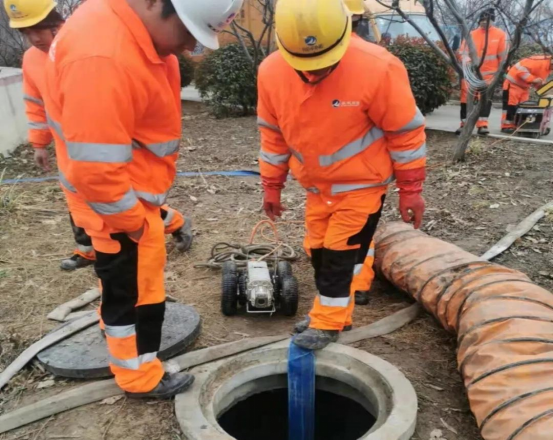 佛都污水的大事记就这样拉开了序幕;经过4天的不间断抽水二沉池的污水已经基本排空,具备了割开管道探寻内部是否堵塞的前提条件,施工方在等待抽干阀门井内的积水后下到3米多深的大阀门井内切开了DN500的排污钢管,昏暗的深井和满管子的污水,依靠人无法探测到18米长钢管内的复杂情况,刘淑青经理要求施工方马上联系专业的管道探测队伍来救援,管道探测队伍来到后非常贤娴熟的利用先进的机器人钻到管道内部进行探测,利用不足两小时的时间终于在下午16点47分发现了堵点,经测量分析,此堵点在池子中心污泥收集端口处有部分应该清除而未清除的大量DN25螺纹钢筋堵住了排泥口,造成一开始就出泥不畅。