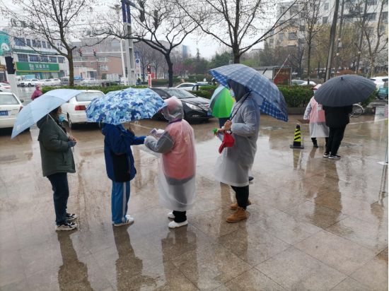“请大家排好队,保持一米间距,戴好口罩,提前出示检测二维码。”3月25日下午,在北关社区核酸检测点现场,华龙水业的青年志愿者们正紧张地忙碌着。大家耐心地维持秩序、扫码登记、测量体温、搀扶老人进出场,受冷空气影响,宁阳下起了雨,气温骤降,寒风冷雨中从白天连续奋战到晚间,时刻考验着志愿者们的体力和毅力。累了捶捶腰,冷了搓搓手,志愿者们丝毫没有退缩,始终面带微笑、认真细致、尽职尽责的完成工作,他们的热情和担当,也得到了现场群众的广泛认可。最终,在志愿者和医护人员的共同努力下,核酸检测工作顺利完成。