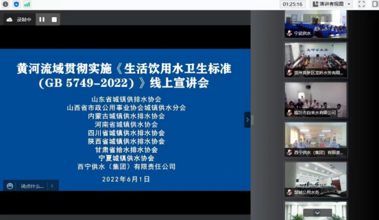 为提升供水水质,保障供水安全,6月1日,山东省城镇供排水协会联合山西省市政公用事业协会城镇供水分会、内蒙古城镇供水排水协会、河南省城镇供水协会、四川省城镇供水排水协会、陕西省城镇供水排水协会、甘肃省给水排水协会、宁夏城镇供水协会和西宁供水(集团)有限责任公司共同召开了黄河流域贯彻实施《生活饮用水卫生标准(GB 5749-2022)》线上宣讲会。宣讲会邀请中国城镇供水排水协会章林伟会长、山东省住房和城乡建设厅城建处王冠副处长进行线上指导,邀请山东省城市供排水水质监测中心贾瑞宝主任做线上宣讲。