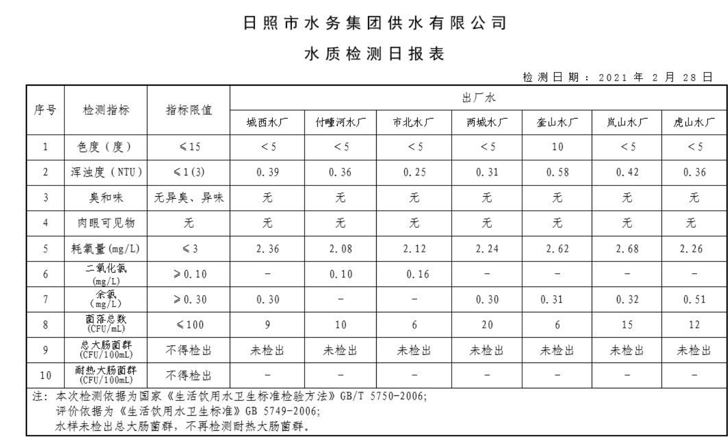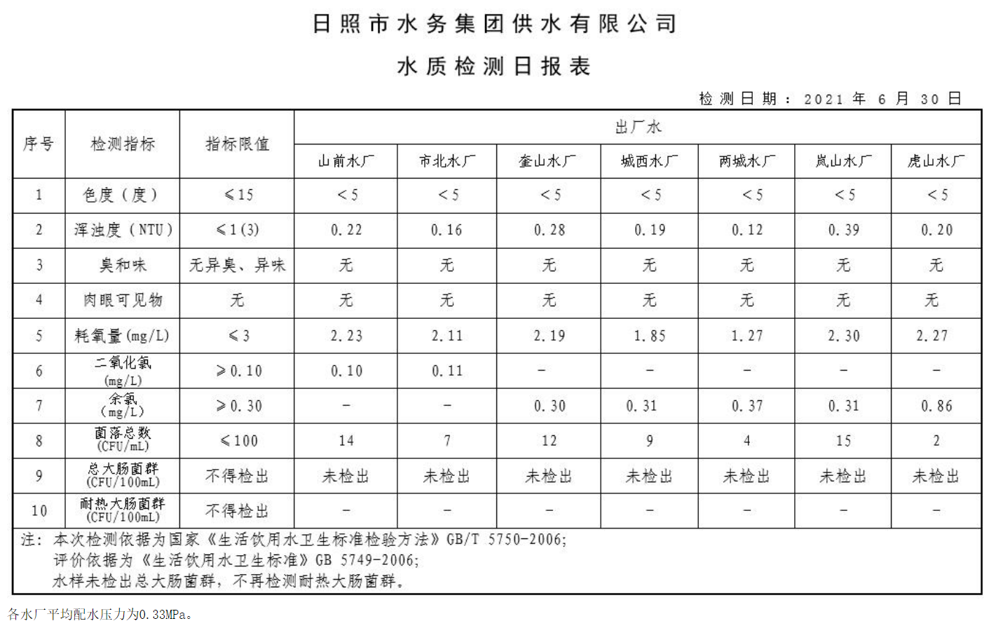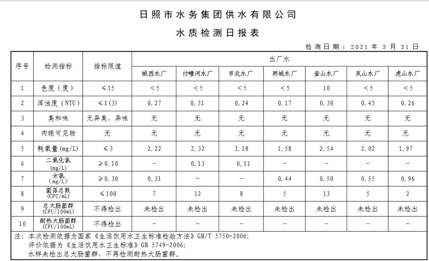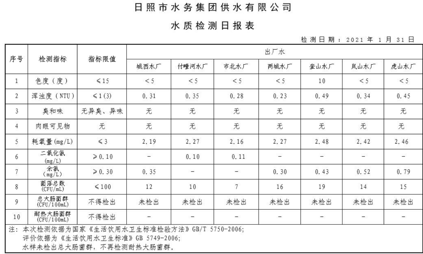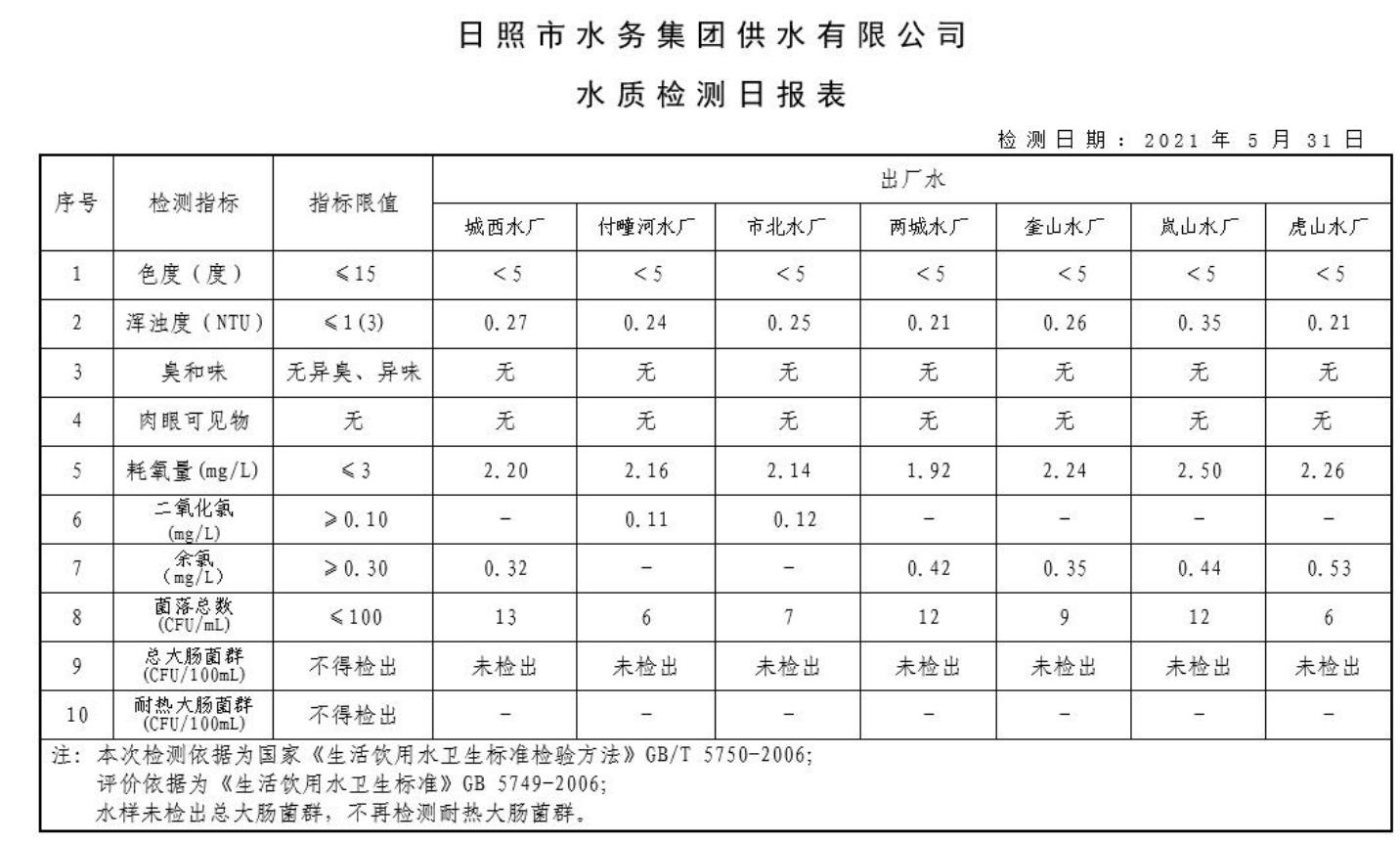 11-日照市2021年1月-6月供水水质