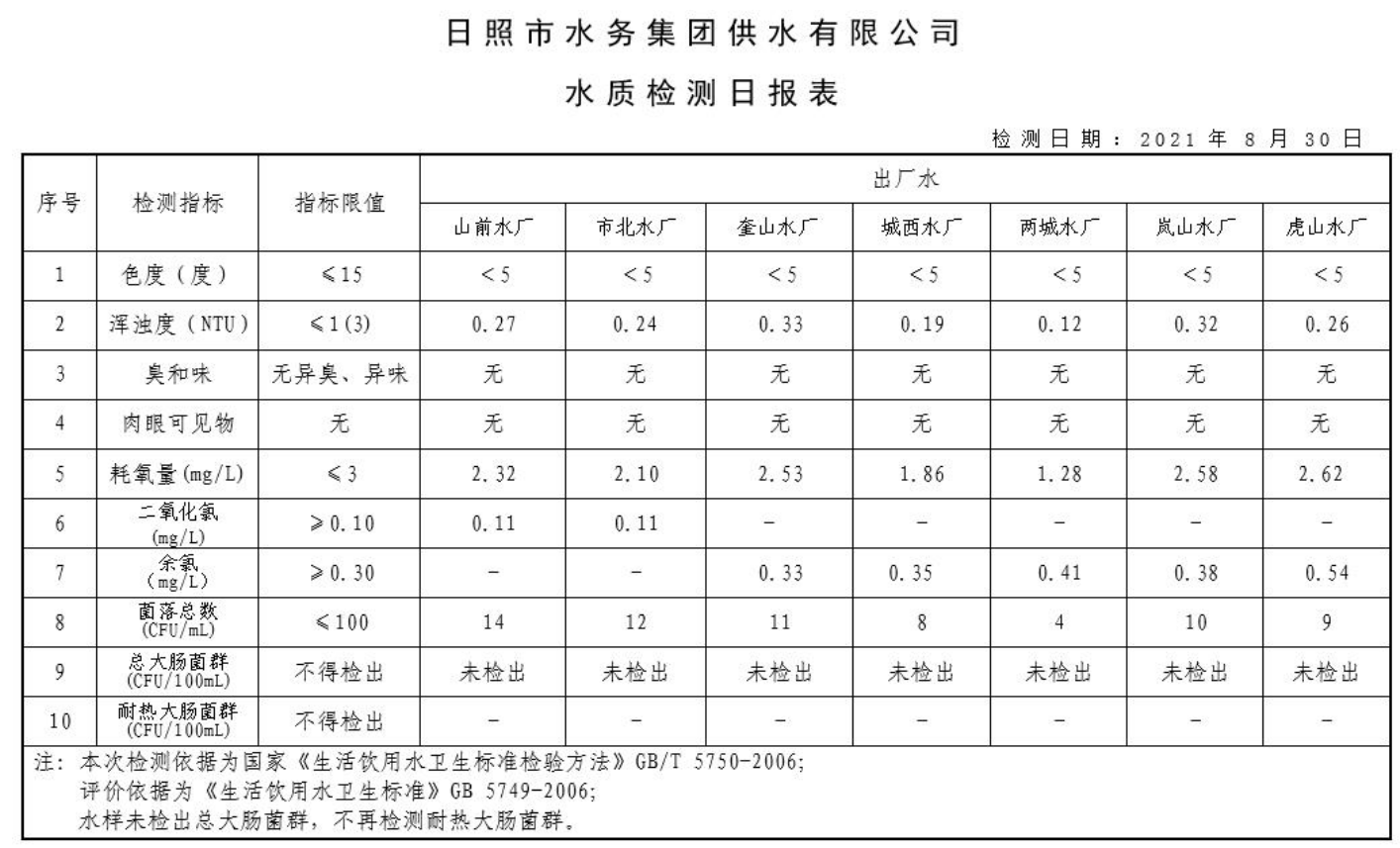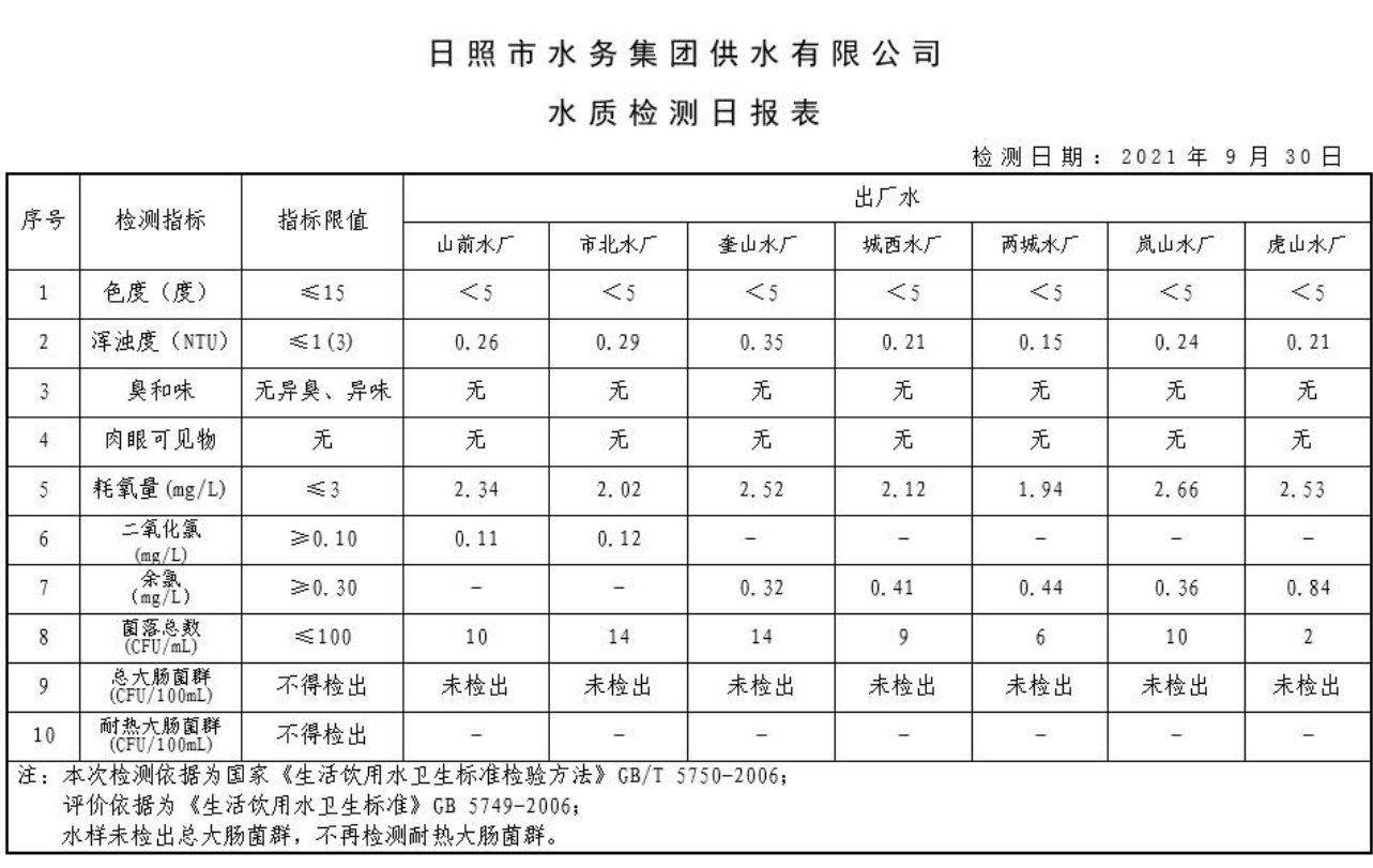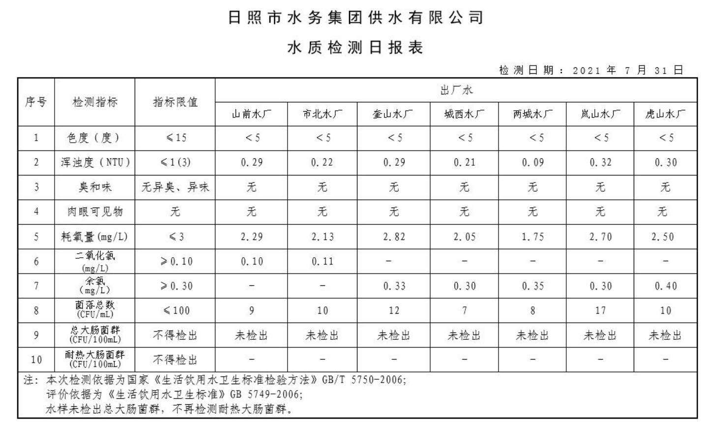 11-日照市2021年7月-12月供水水质