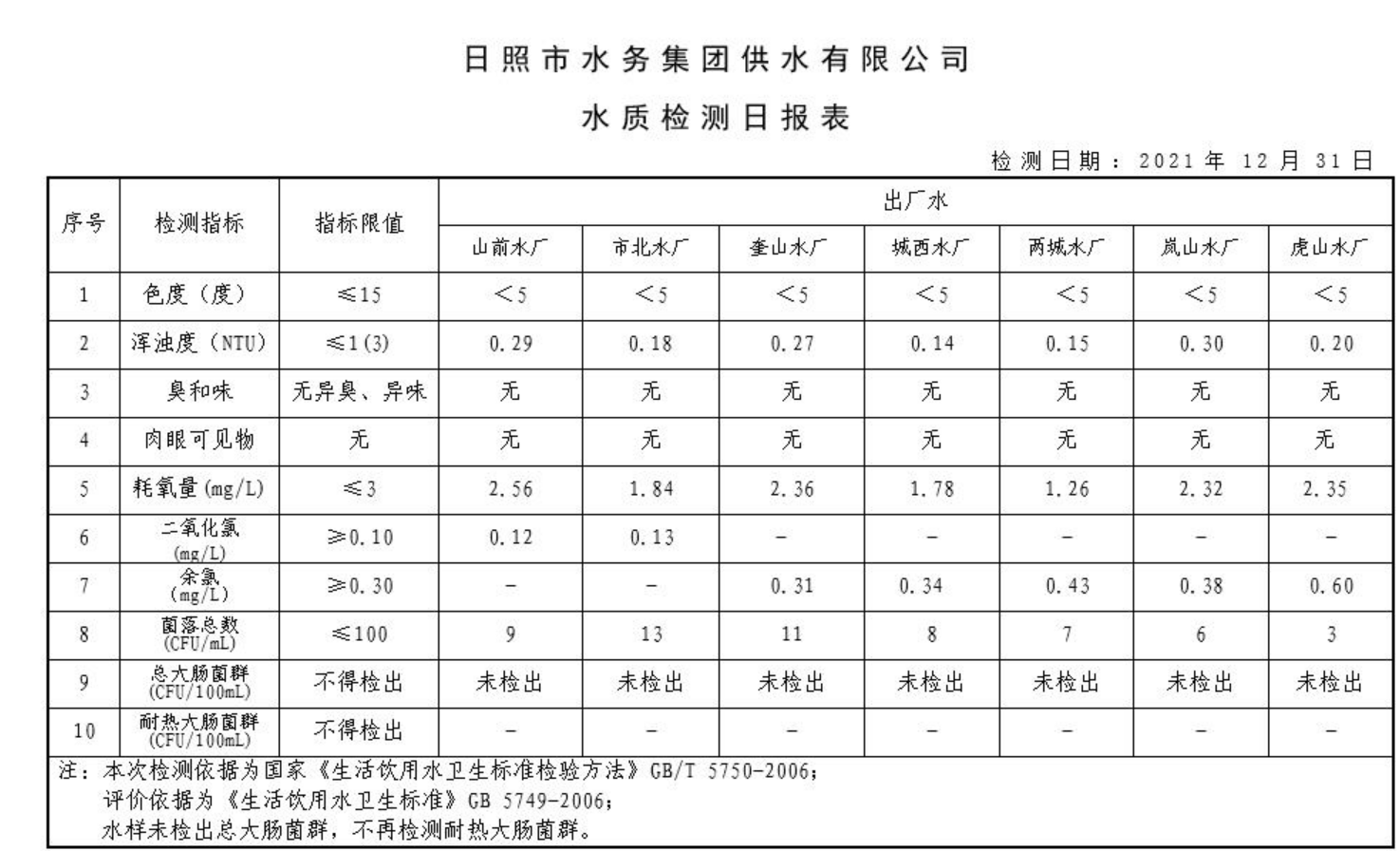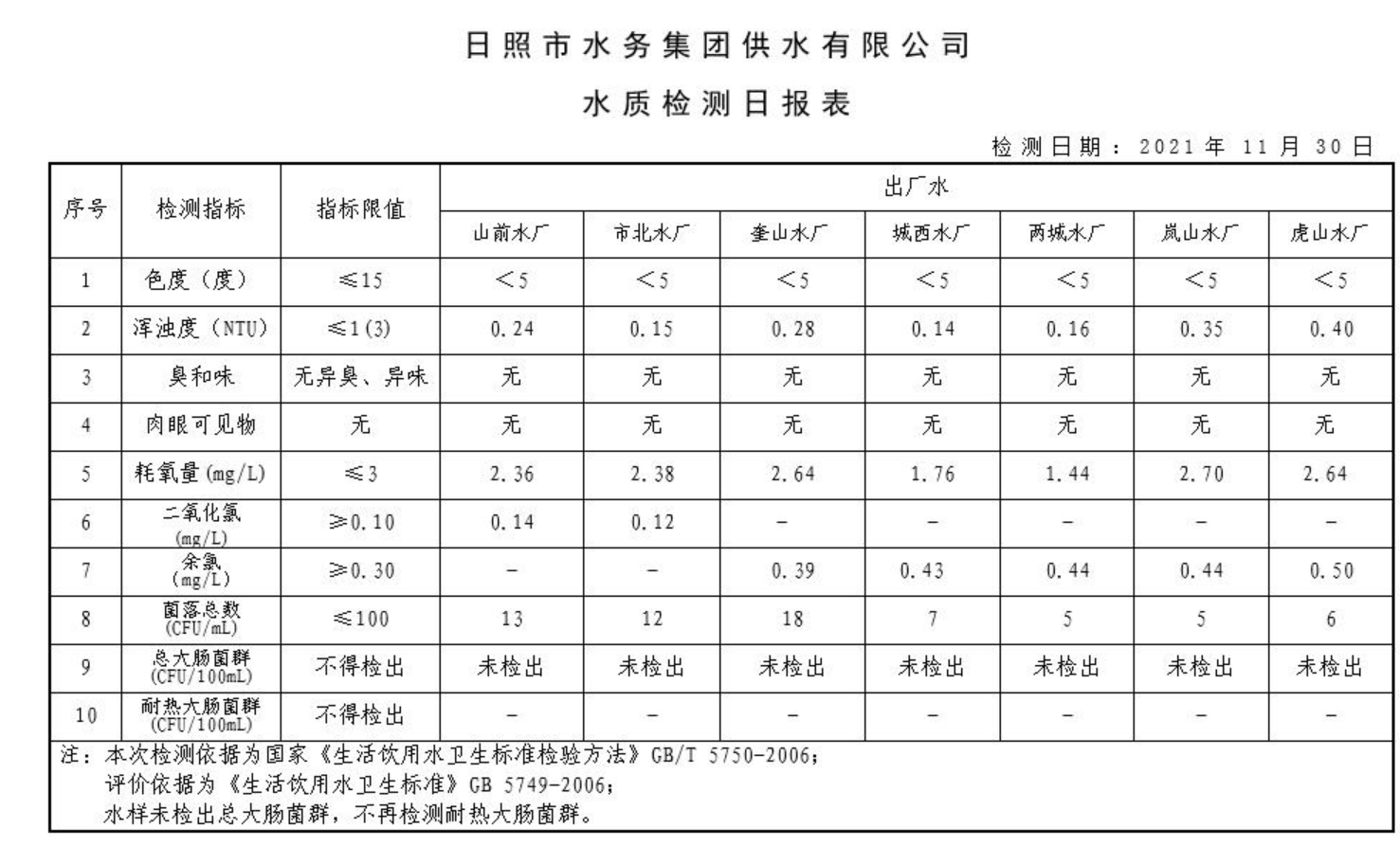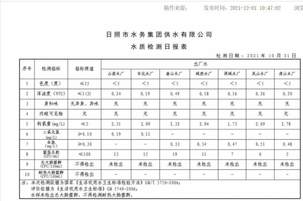11-日照市2021年7月-12月供水水质