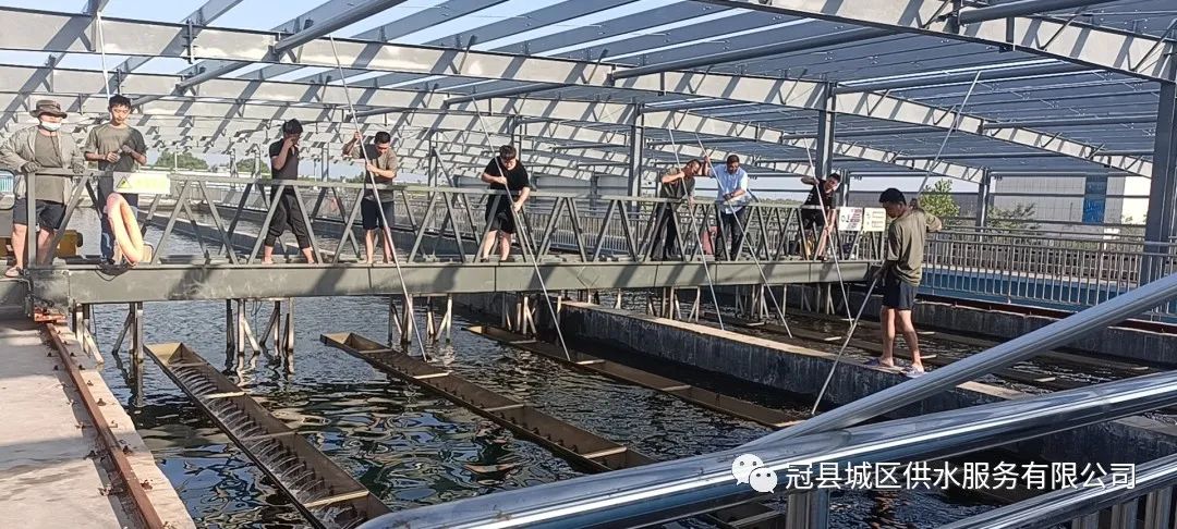 为进一步提升供水水质,切实保障广大居民的用水安全,近日,县水务集团在保障不间断供水的情况下,对水厂平流沉淀池、v型砂滤池、生物活性炭滤池等10个工艺水池进行了全面清洗、消毒。