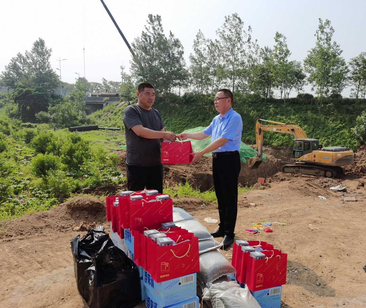 莒县自来水有限公司经理何茂锋同志一行人先后来到城乡供水一体化DN1200主管道施工现场、前夏庄村验收现场、客服中心维修等施工现场。慰问中,何茂锋同志认真了解了一线员工在高温天气下的工作状况,嘱咐他们夏季炎热,天气干燥,一定要做好防暑降温工作,既要注意个人安全,又要有条不紊地保质保量完成各项工作任务,并代表公司对他们在高温下坚守岗位、忠于职守的精神表示衷心的感谢。