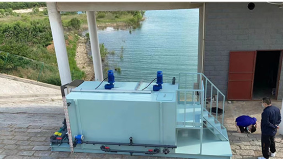 随着夏季藻类繁殖期来临,为更好地改善水质,近日,烟台市自来水有限公司在门楼水库取水口设置活性炭应急投加设备,保证原水水质指标达标。