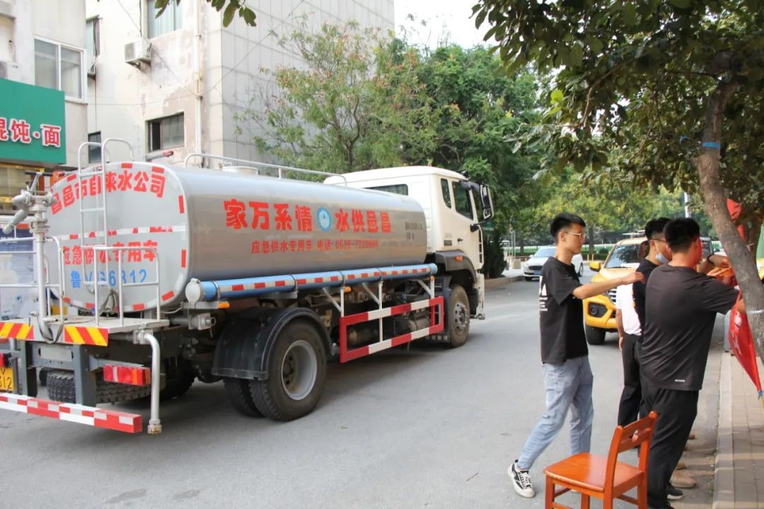 此外,为保障该区域群众正常用水,昌邑市水务集团有限公司出动应急供水车,不仅把水送到居民家门口,对于存在困难的住户,还专门有志愿者帮忙。