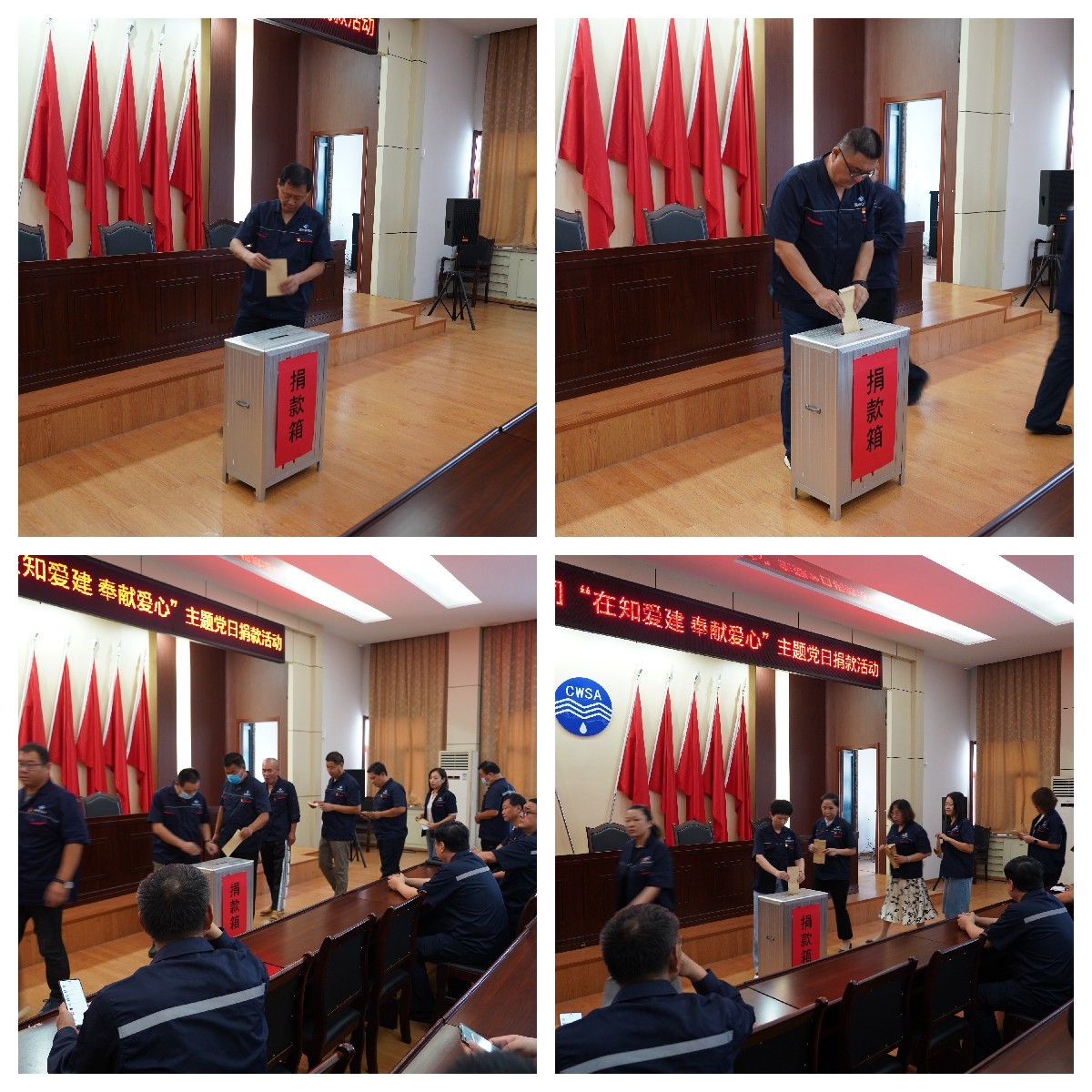 活动首先宣读了《关于开展“在知爱建•奉献爱心”主题党日捐款活动的通知》,传达了《滨州市慈善总会关于开展 2022 年度慈善募捐活动的实施方案》,通报了《滨州市慈善总会 2021 年度财务报告》,后又观看了“第十届滨州慈善奖”发布仪式视频,随后组织人员现场捐款,并公示了本单位人员捐赠情况。