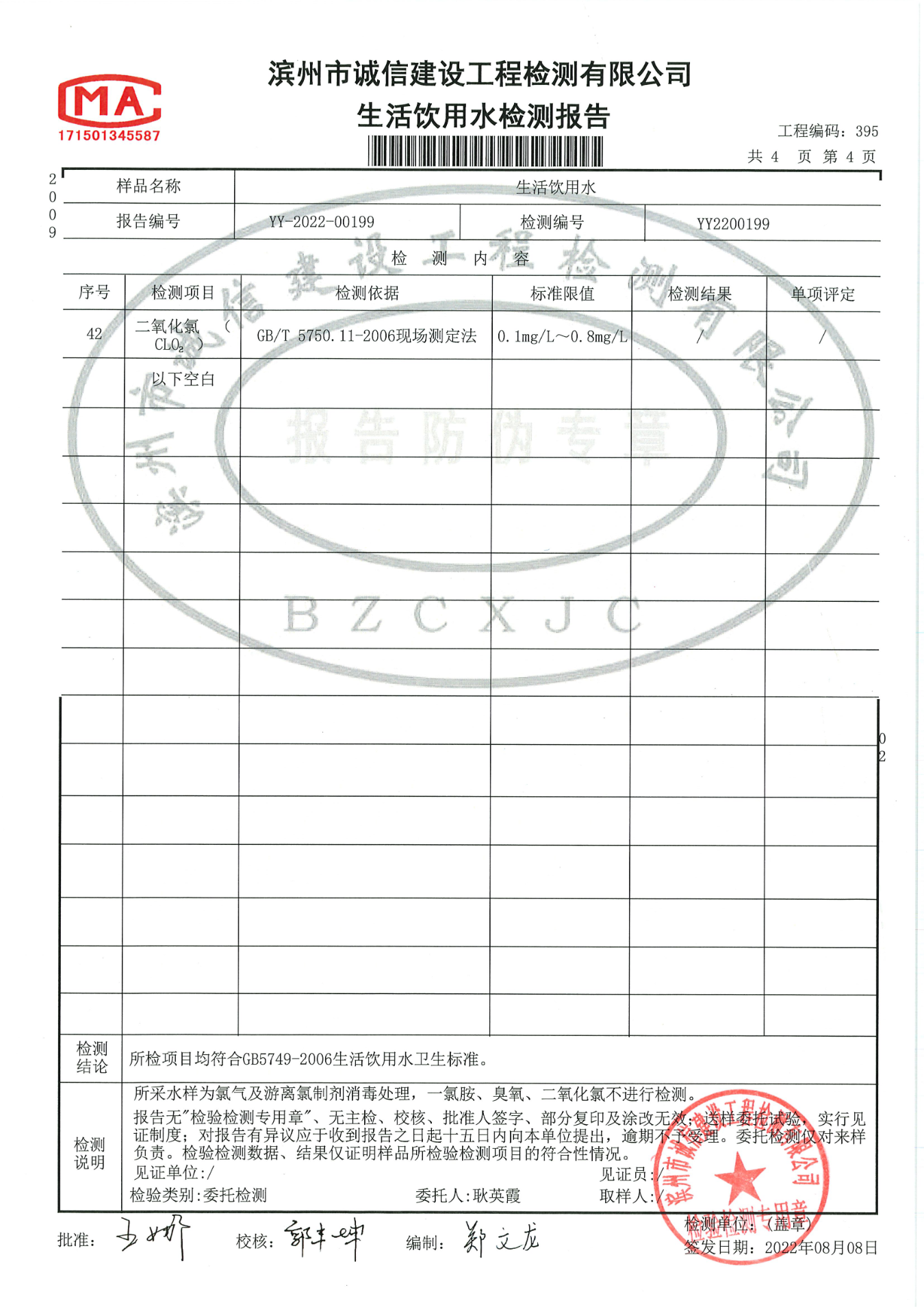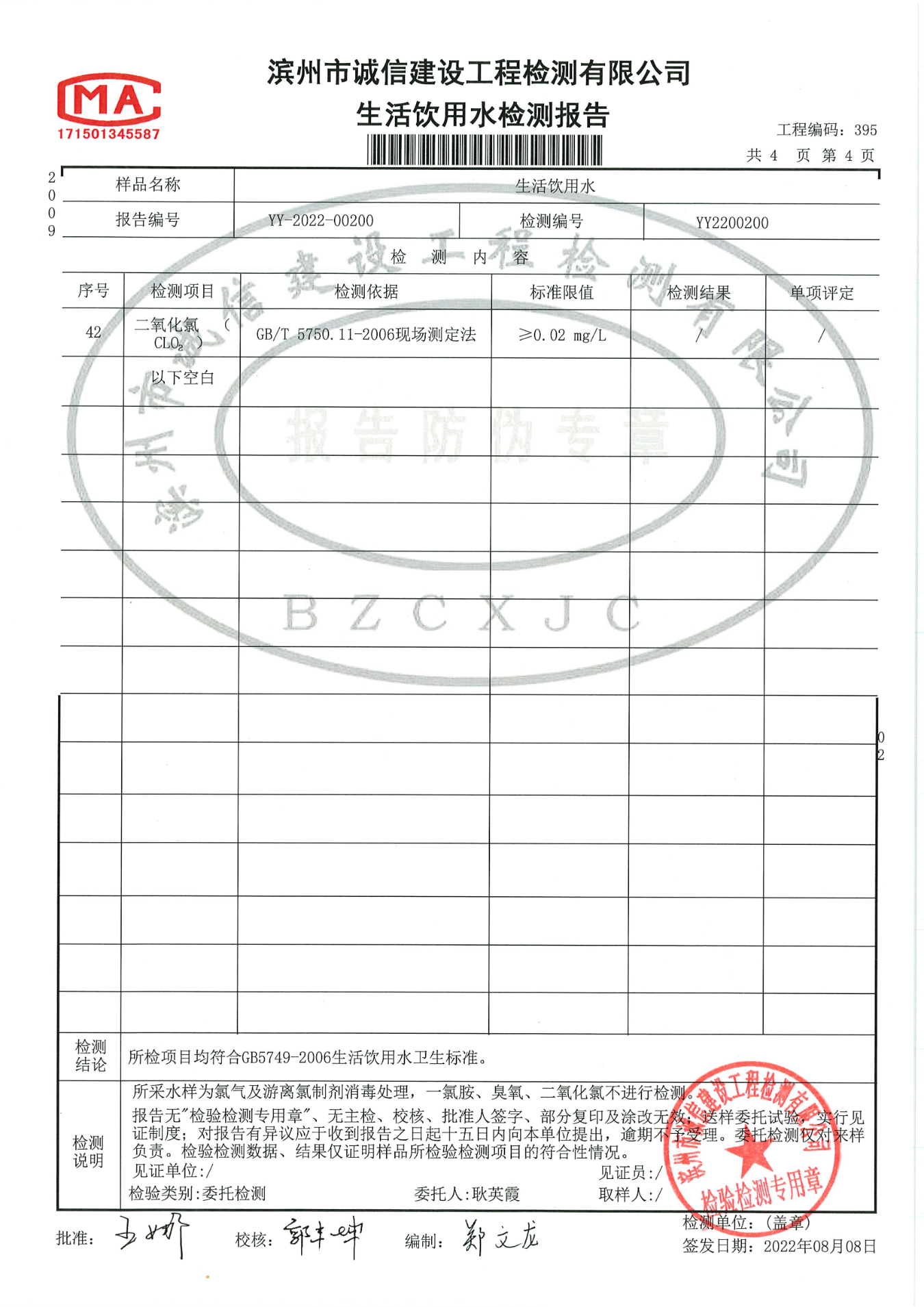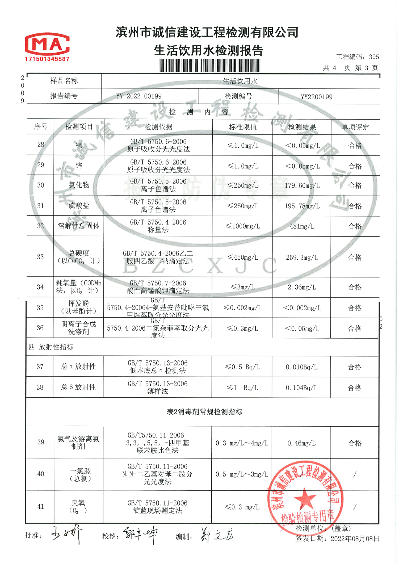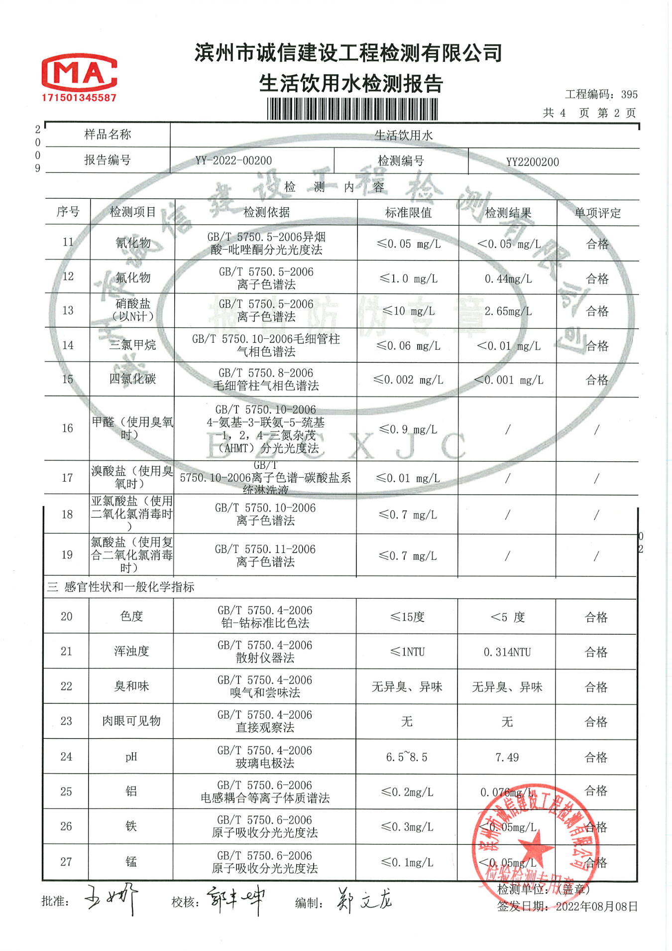 2022年第二季度管网末梢水42项检测报告