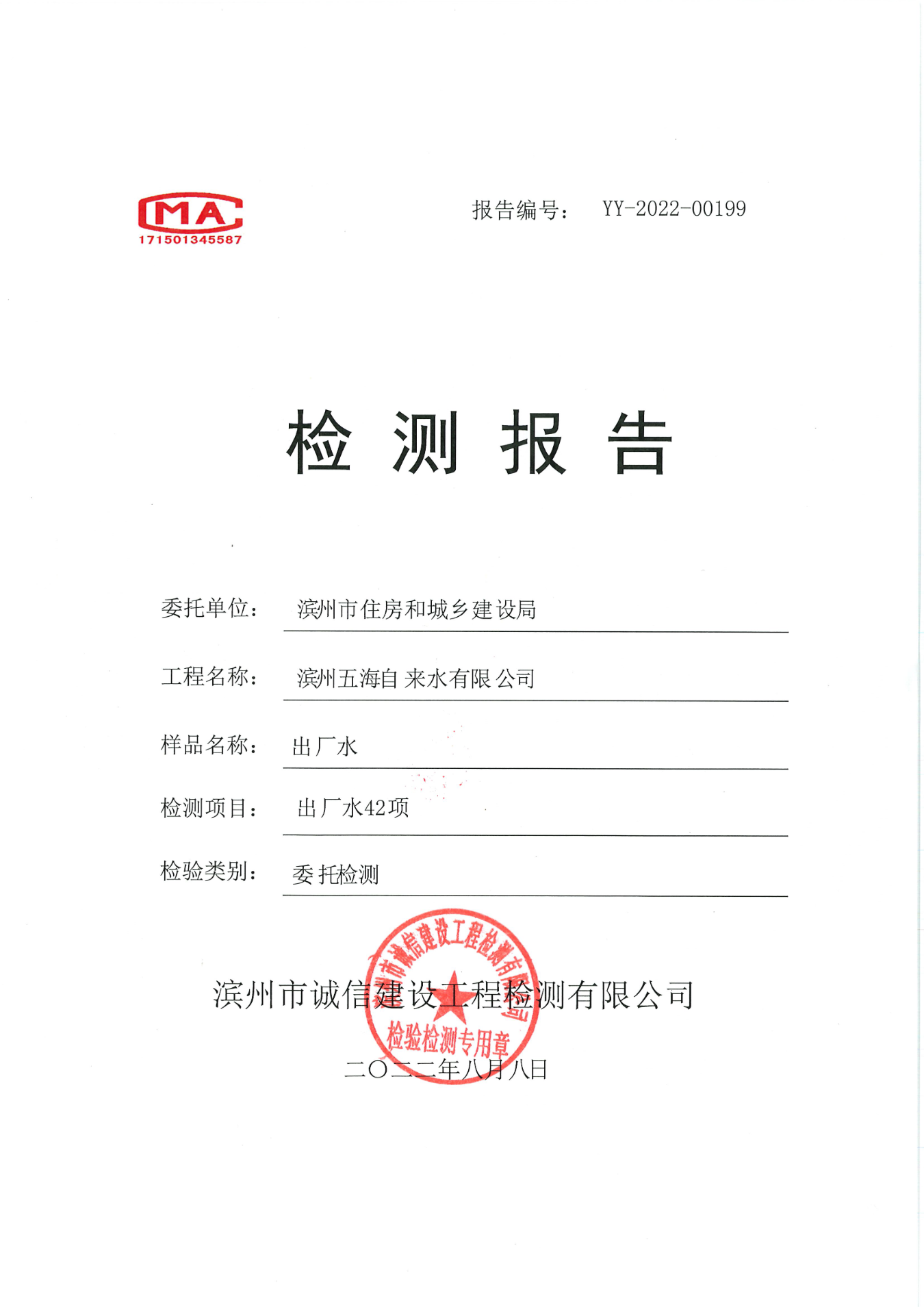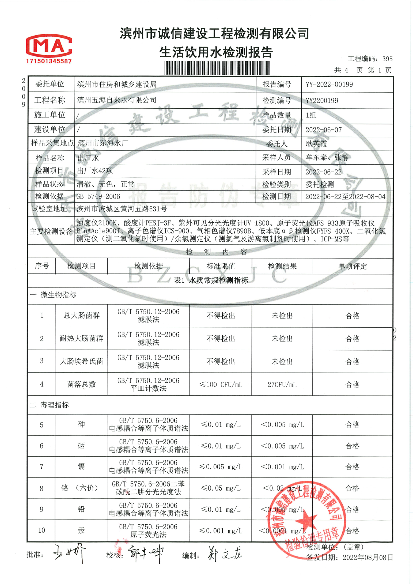 2022年第二季度出厂水42项检测报告