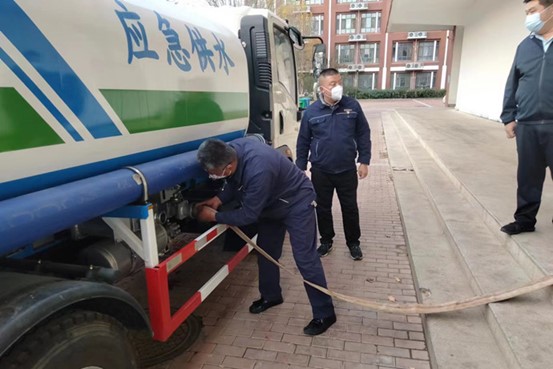 因为前期工作较为复杂,为了不影响校区内近3000名师生的正常用餐,自来水公司立即决定调来应急供水车,在管道抢修的同时做好校园内的生活用水保障。