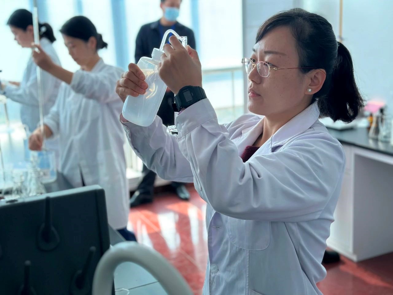 水质检测工赛场设于中禹环境检测公司,以“氯化物测定”为检测实操项目,以测定的规范性、结果的精准度为判别标准,检测员们在比赛过程中展现娴熟的技术水平。