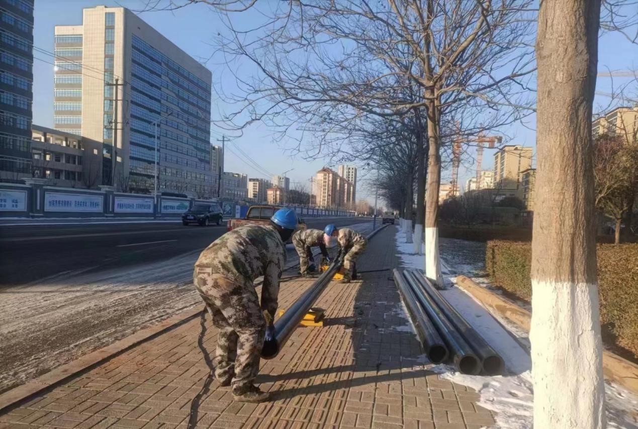 迎“疫”而上,保障用水需求。管道安装公司第一时间启动供水保障应急预案,加强对供水设施的巡查排查,采购配备充足的抢修物资,做好一线人员的调配工作,应急抢险队伍24小时全天候待命,及时快速应对各种突发事故。同时有序推进新医院上水安装,按照“双路”供水设计要求,全力保障医院用水需求。目前已完成两路供水管线施工任务,下一步可根据新医院的需求,随时为项目通水。