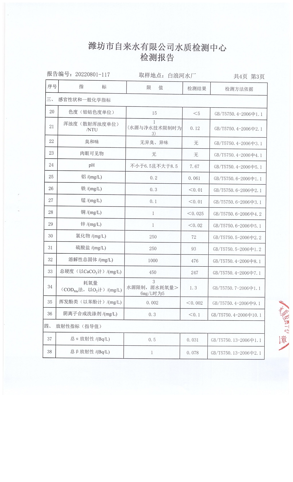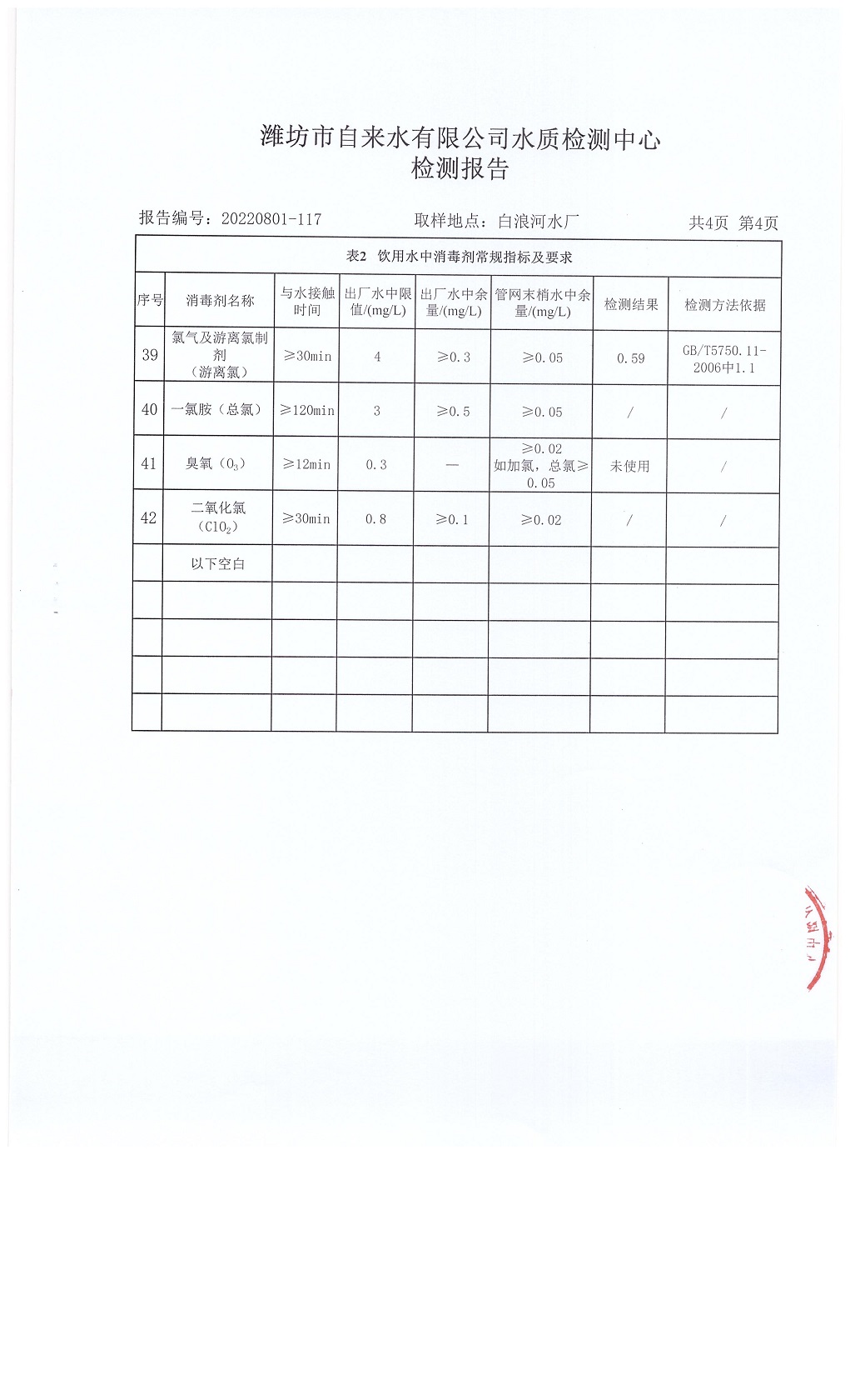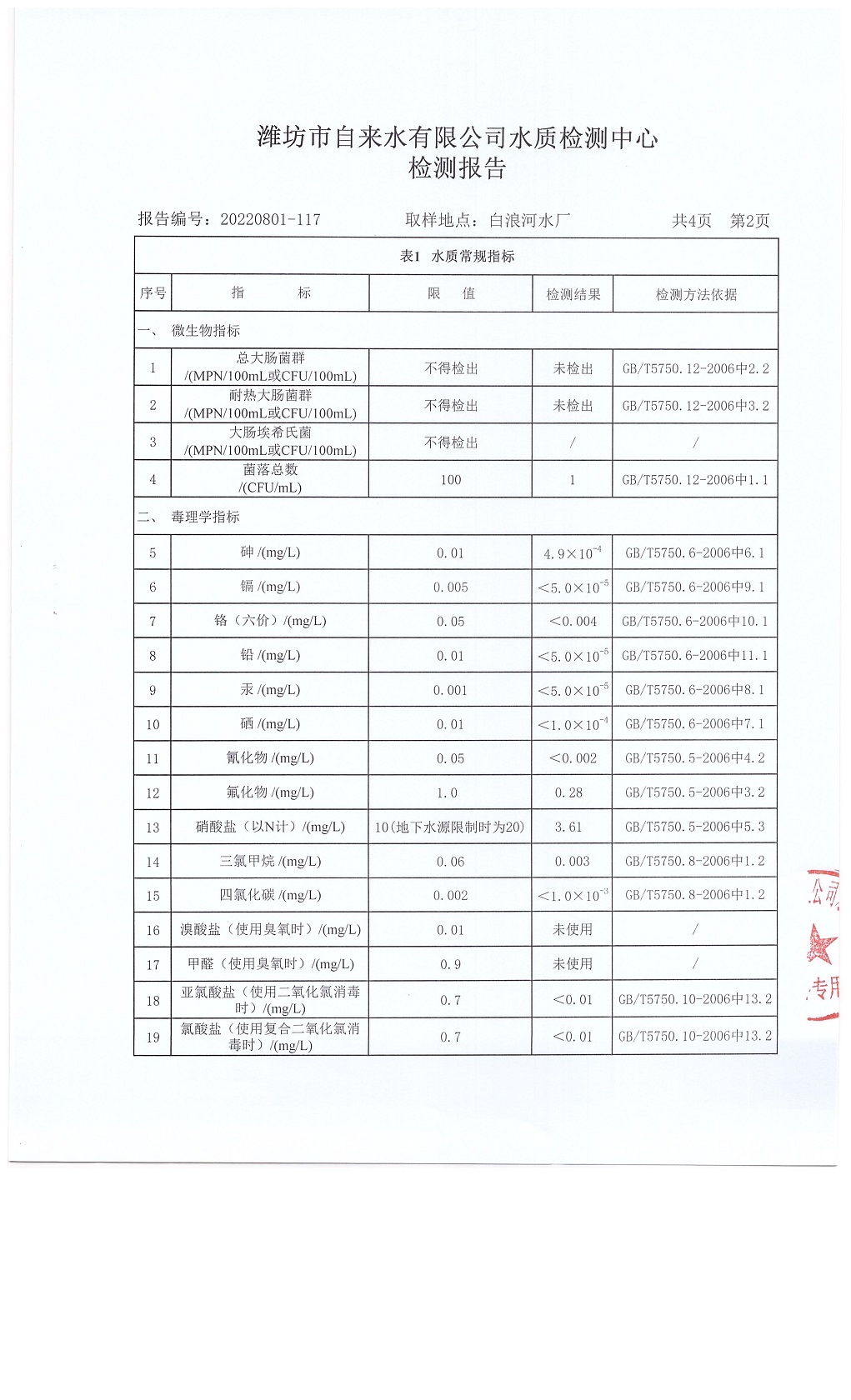 出厂水水质42项指标检测结果(2022年08月)