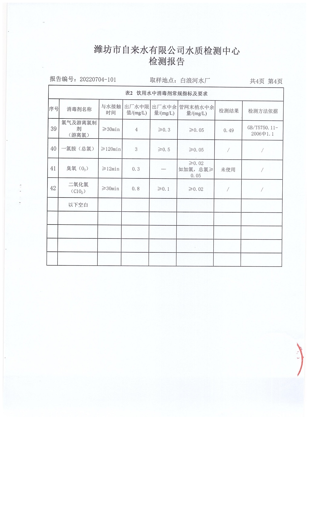 出厂水水质42项指标检测结果(2022年07月)