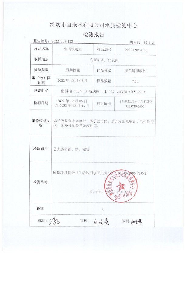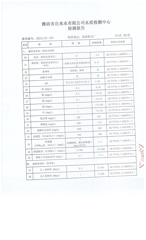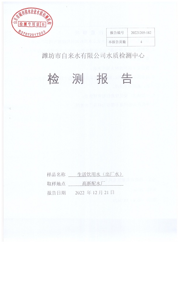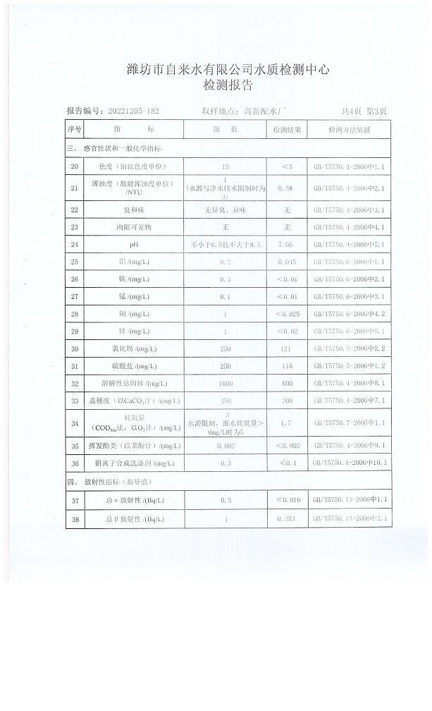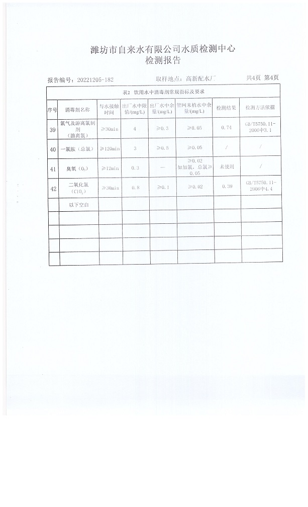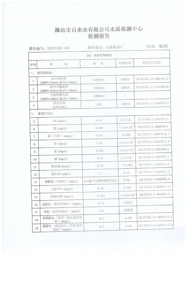 出厂水水质42项指标检测结果(2022年12月)