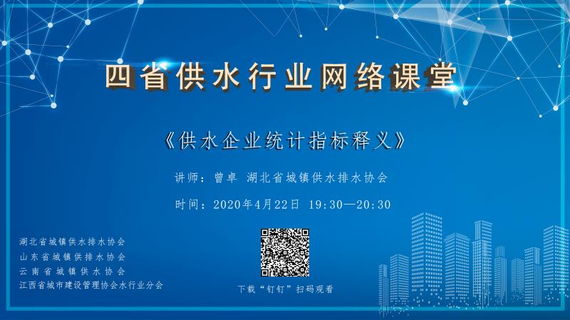 为提升供水行业从业人员的业务能力, 4月22日,一场由湖北省城镇供水排水协会、山东省城镇供排水协会、云南省城镇供水协会、江西省城市建设管理协会水行业分会共同组织的四省供水行业网络课堂如期举行。