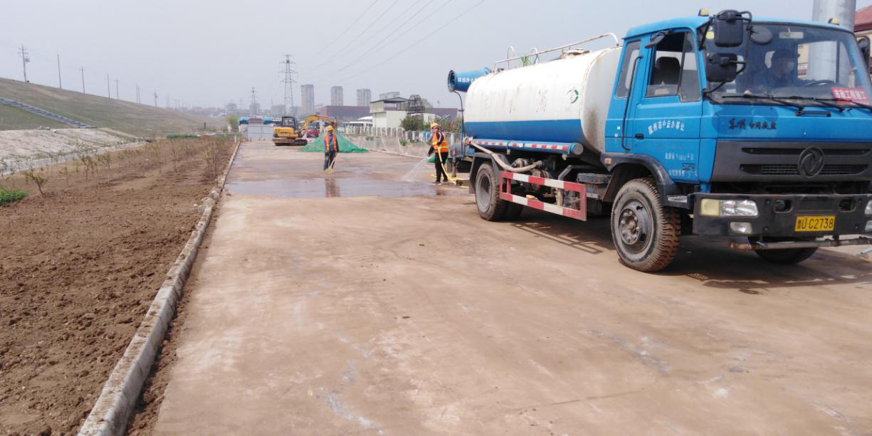 近日,胶州市温州路(香港路-惜苑路)给水管网工程施工现场,挖掘机不停地挥舞它的大爪子,来回不停地进行着挖掘作业,旁边的洒水车喷着“雾炮”进行降尘处理,工人们正在紧张地忙碌着,工地上到处都是一派繁忙的景象。