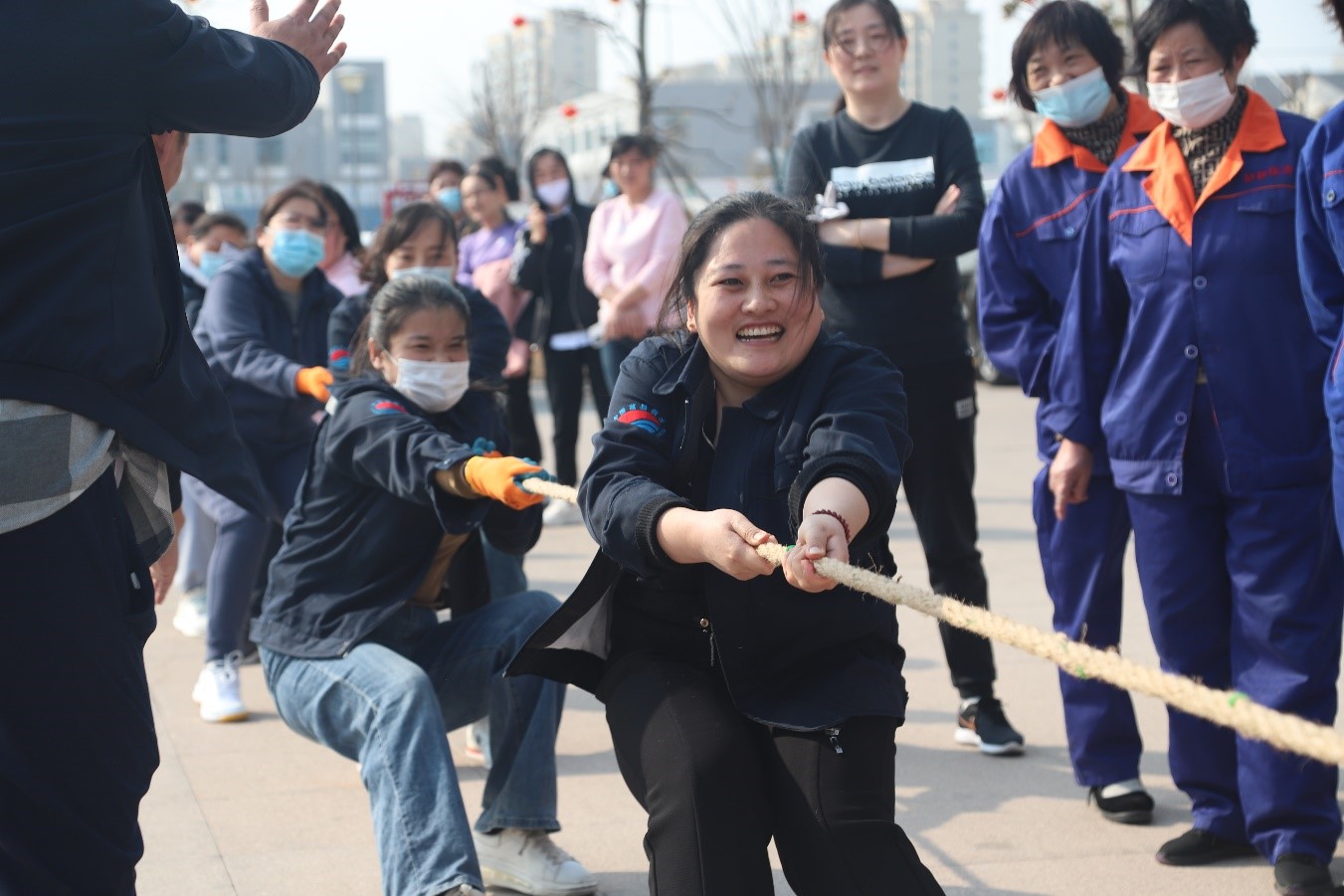 3月7日上午,在屋楼幸福田园综合体举行了健步走比赛,选手们健步快走,精神抖擞,步伐坚定,矫健的身姿形成一道美丽的风景,大家都沉浸在了健康、快乐的氛围当中。下午在新城大厦举行拔河、跳绳比赛,选手们凝气聚神、全力以赴,现场的加油声与欢笑声交织在一起,融成一片欢乐的海洋。