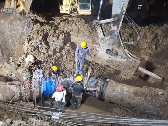 针对突发损毁供水管网的情况,公司抽调骨干力量组建应急抢修队伍,24小时待命,对长江路快速通道工程施工实施全天候配合保障。一旦出现管道被破坏的情况,抢修人员会第一时间对受损管道进行修复。目前,菏泽市水务集团自来水有限公司依旧全天候待命,随时应对各类突发事件,尽量减小施工期间对沿线居民用水造成的影响,全力以赴,高质量做好长江路快速通道工程供水设施保障。