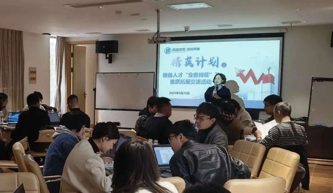 为加大青岛水务集团有限公司储备人才培育力度,促进储备人才交流与成长,近日,人力资源部观澜学堂以企业自主评价教材为“磨刀石”,开展精英计划之储备人才“业务找茬”及素质拓展交流活动,各单位储备人才近40人参加活动。