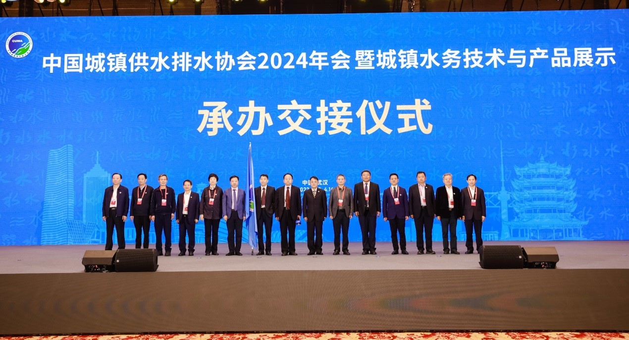 4月14日,中国水协2022/2023年会综合大会隆重召开。中国水协2024年会将在山东省青岛市举办,会上进行了签约仪式,本届年会承办单位武汉市城投集团副总经理、武汉市水务集团黄思董事长和武汉市水务集团周强总经理将会旗交给中国水协章林伟会长,章会长将会旗授予省住房城乡建设厅城市建设处王强处长、省水协邓杰会长和青岛水务集团夏正启董事长。