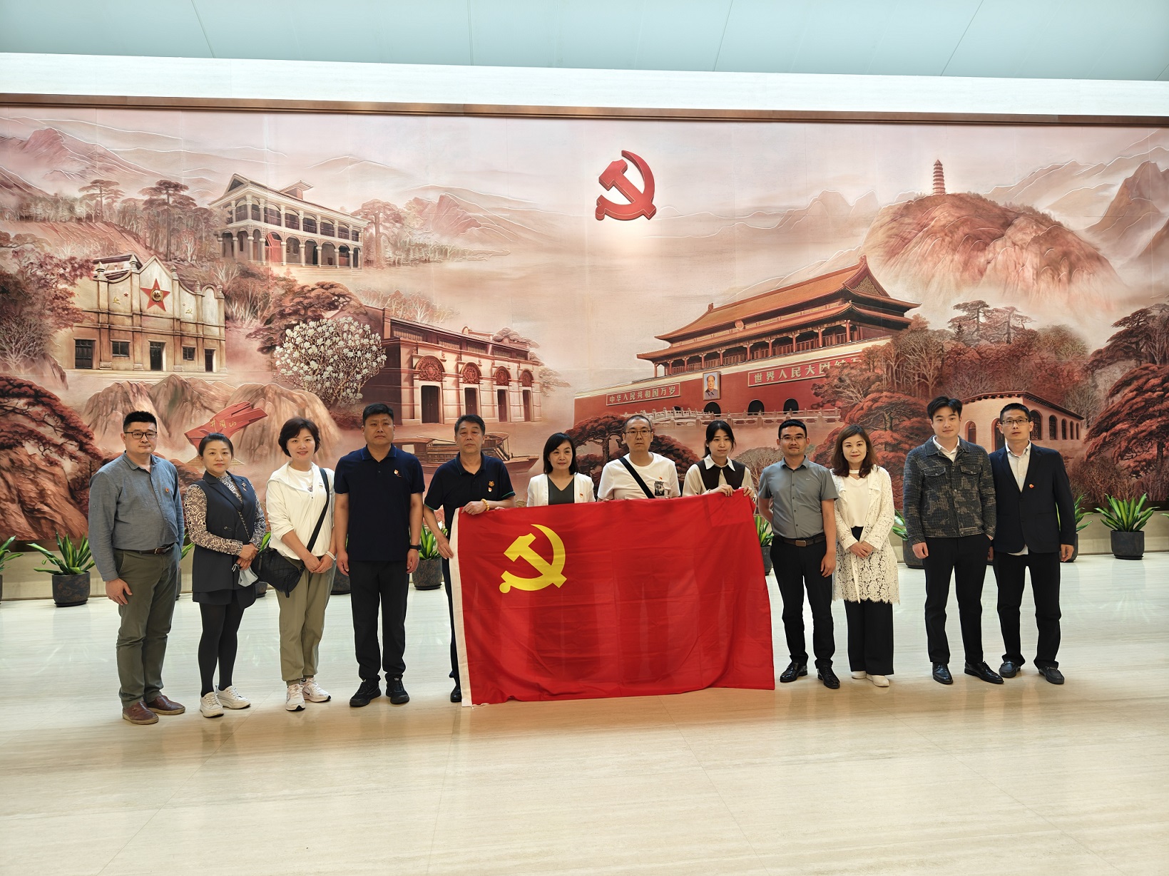 走进中共一大纪念馆,映入眼帘的是“日出东方—从石库门到天安门”历史组画,在讲解员的带领下,大家先后参观了序厅、“前仆后继 救亡图存”“民众觉醒 主义抉择”“早期组织 星火初燃”“开天辟地 日出东方”“砥砺前行 光辉历程”和尾厅“不忘初心、牢记使命 永远奋斗”等7个展厅。丰富的展品和多媒体声像技术生动还原了中国共产党的诞生历程和建党初期中国共产党在上海的革命实践,史诗般展现了中国共产党从孕育、诞生到砥砺奋进的历史征程。在宣誓大厅,大家字句铿锵地重温入党誓词,感受着伟大建党精神的不竭力量。