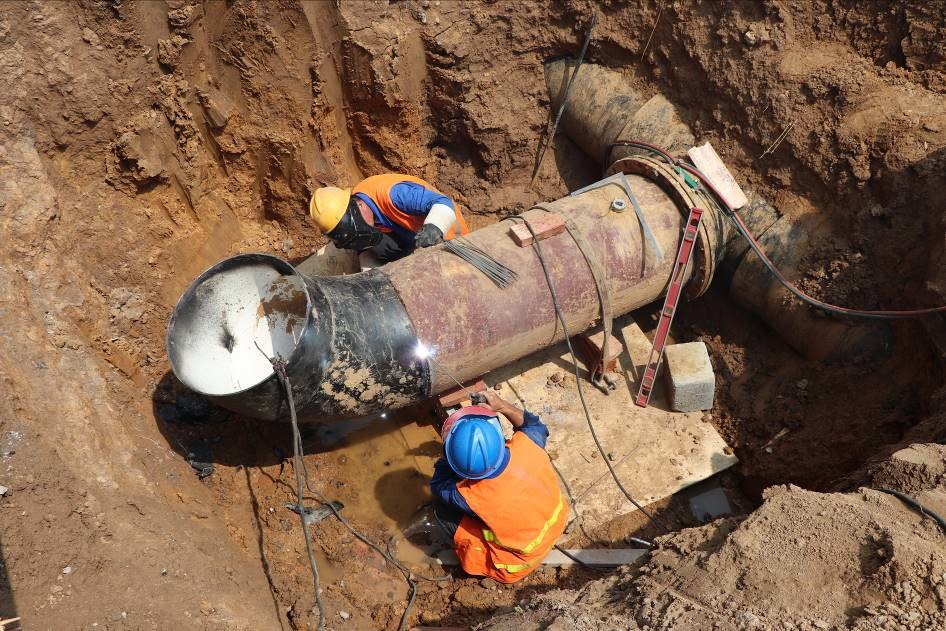 今年,青岛胶州自来水有限公司实施了上合示范区生态大道西延、物流大道工程等23条路配套给水管道建设工程,项目总投资8450.2万元,工程内容为新建包括23条道路配套给水管道及附属设施,管道总长合计24.106千米,目前工程已累计完成直径300-600毫米管道安装共计18790米,完成总工程量的78%;实施上合示范区长江路东延、金融大道南延等20条路配套给水管道建设工程,项目总投资4995.26万元,工程内容为新建包括20条道路配套给水管道及附属设施,合计约13.1千米,目前工程累计完成直径300-600毫米管道安装共计9992米,完成总工程量的76%。上合示范区生态大道西延等23条路配套给水管道建设工程、上合示范区长江路东延等20条路配套给水管道建设工程完工后,解决了上合示范区飞速发展和项目区域内周边居民、企业事业单位、公共设施等用水问题,提高了居民生活质量,为经济长远发展提供了有力保障。