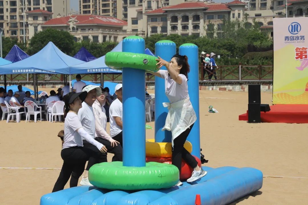 6月9日,由青岛海润自来水集团有限公司工会主办的第四届“海润杯”沙滩趣味运动会在黄岛区金沙滩顺利闭幕。来自海润集团所属9个基层单位,近200余名一线职工参加了12个项目的比拼。水务集团工会、海润集团工会相关领导到现场观摩比赛。