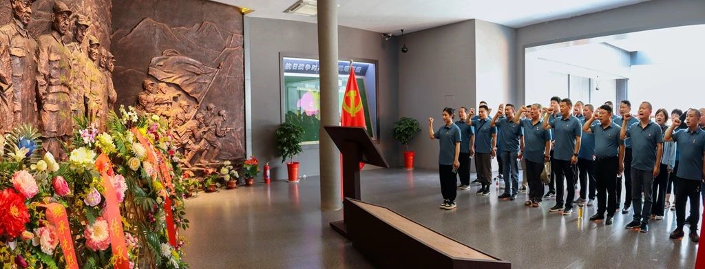 党徽熠熠担使命,实景教育感人心。活动现场,党员干部一行进入威严静穆的纪念馆,面对党旗庄严宣誓,重温入党誓词。随后,在讲解员的介绍和带领下,大家认真聆听着革命先辈浴血奋战的事迹,感受着革命的艰苦和来之不易的胜利,鲜活的历史让党员们深受触动。通过橱窗中红军的装备和物件,一段段详实的文献史料、一件件珍贵的革命文物,仿佛将大家带入了那个时代,亲身感受到了那段历史。