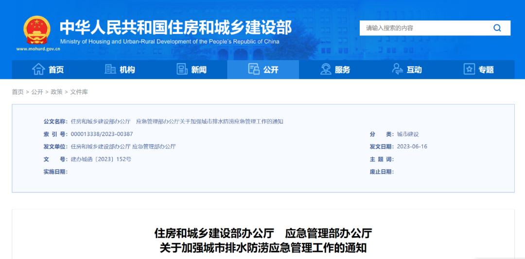 为落实党中央国务院决策部署和国家防汛抗旱总指挥部工作要求,按照《住房和城乡建设部办公厅 国家发展改革委办公厅关于做好2023年城市排水防涝工作的通知》(建办城函〔2023〕99号)要求,请各地进一步完善排水防涝应急机制,做好城市排水防涝应急管理,加强应急处置协同联动,切实保障城市安全度汛。现就有关事项通知如下: