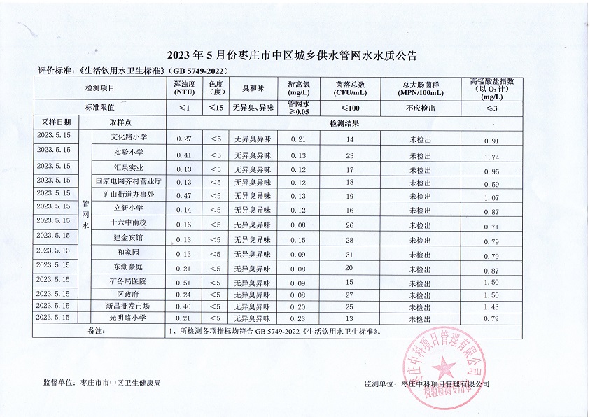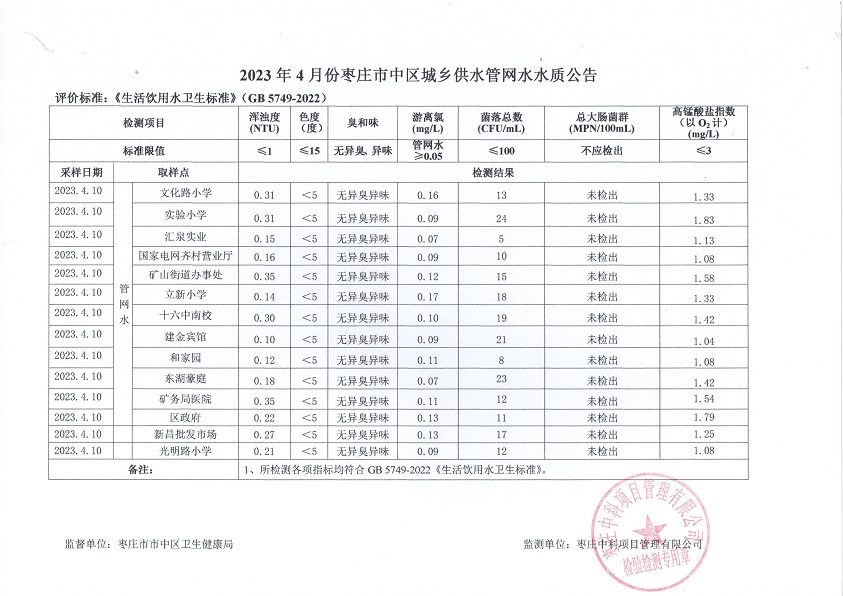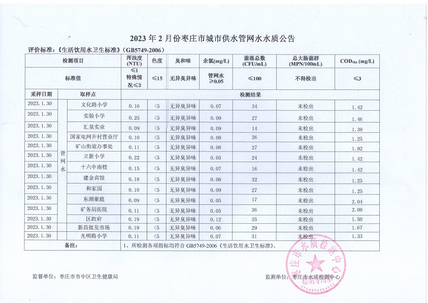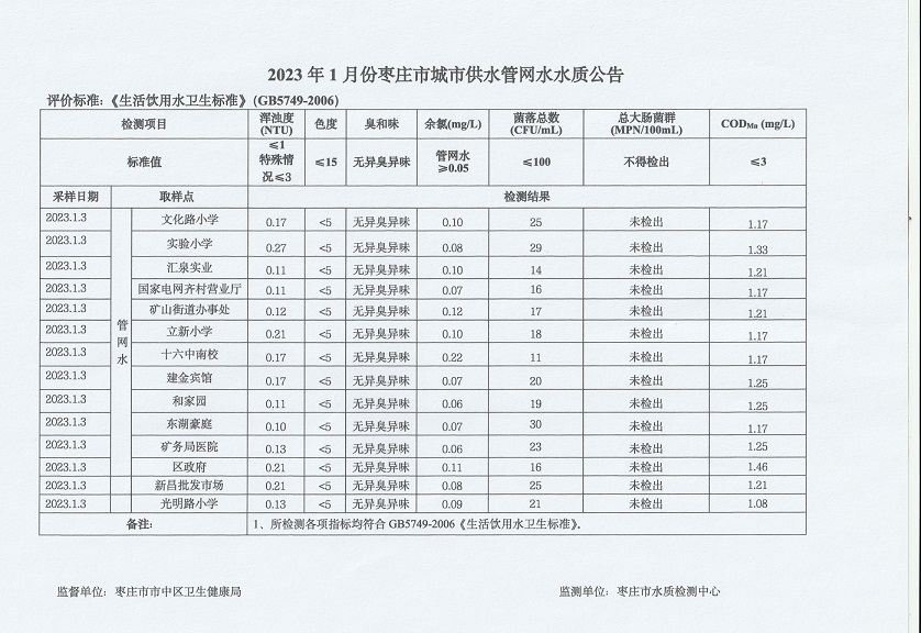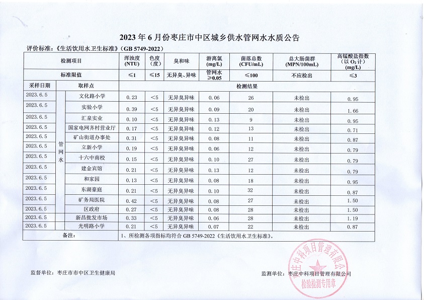 04-枣庄市2023年1月-6月供水水质