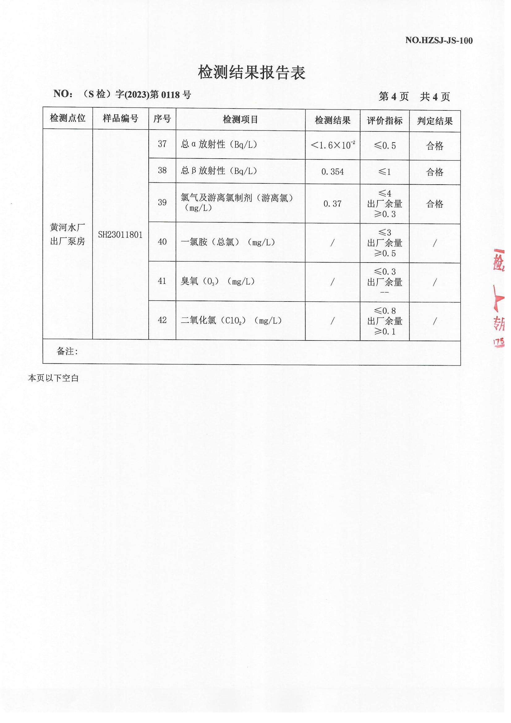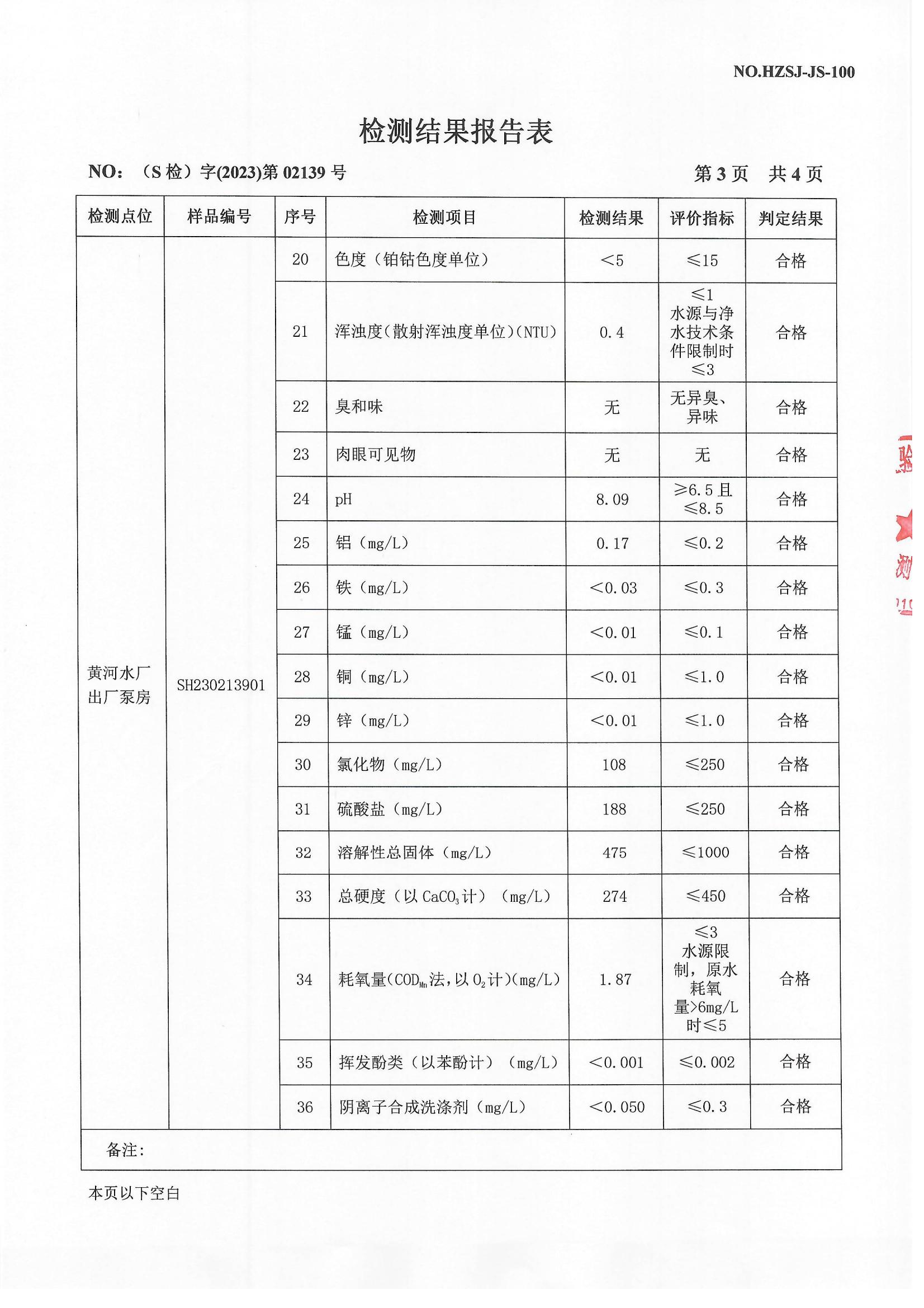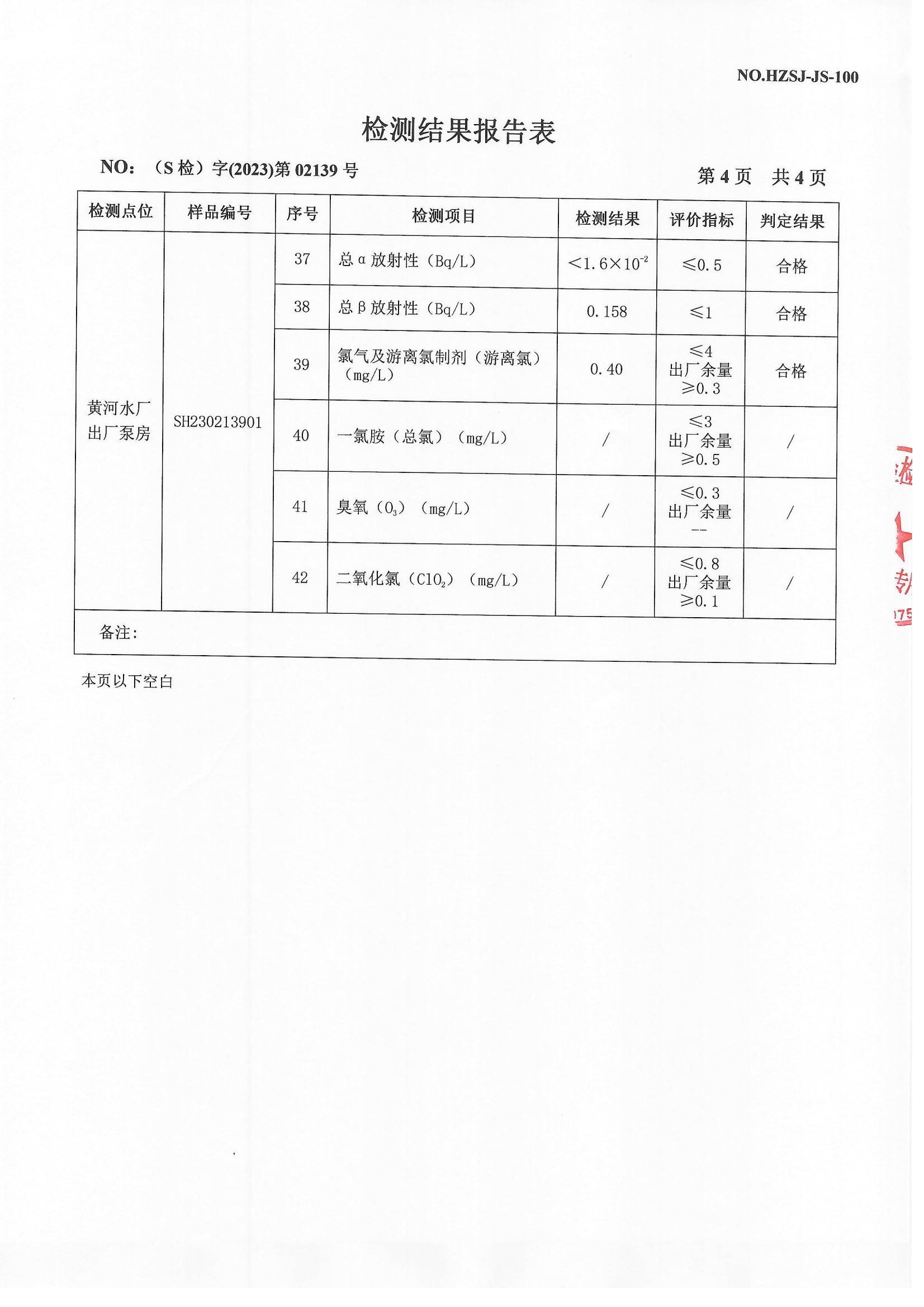 2023年4月出厂水检测报告