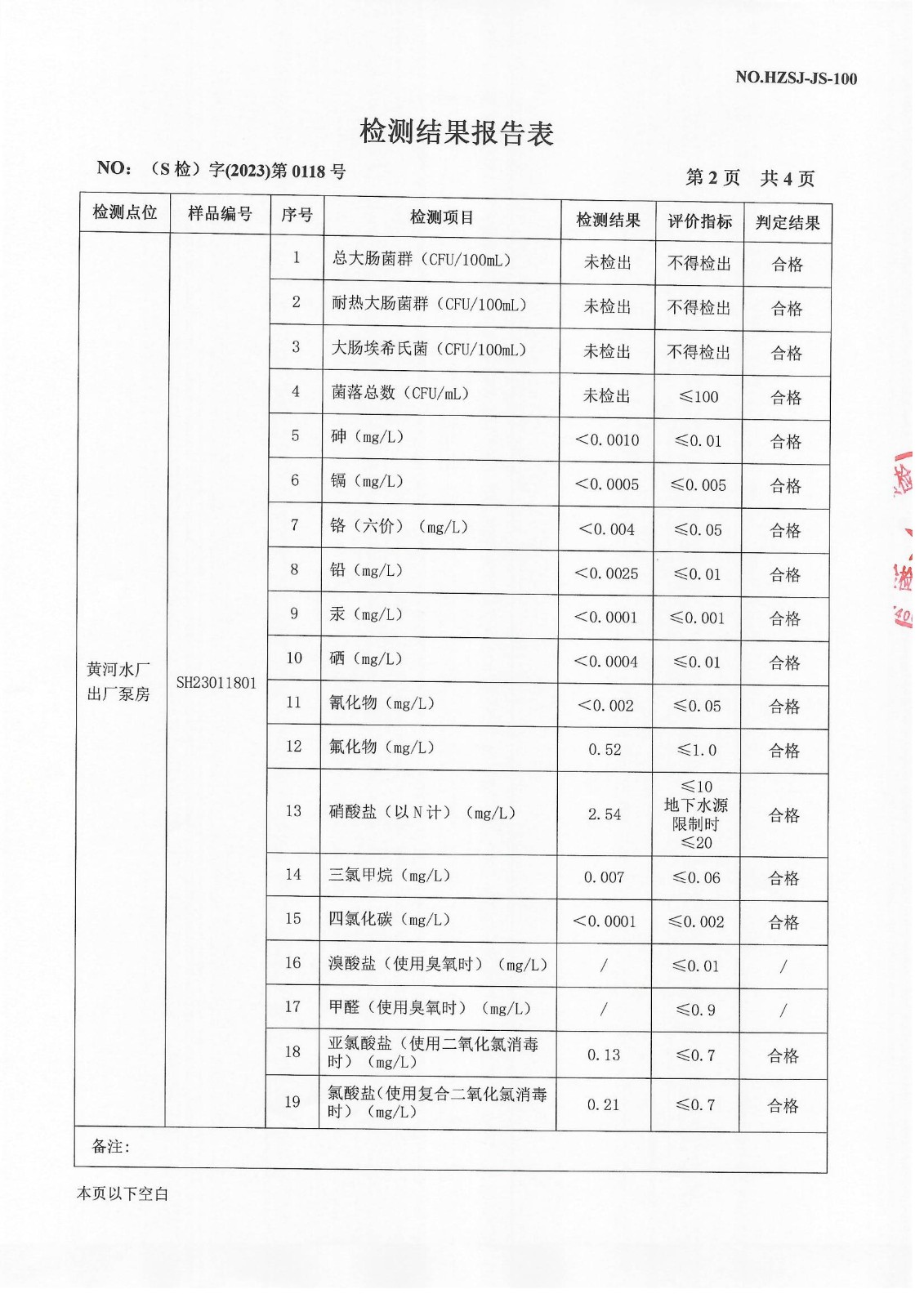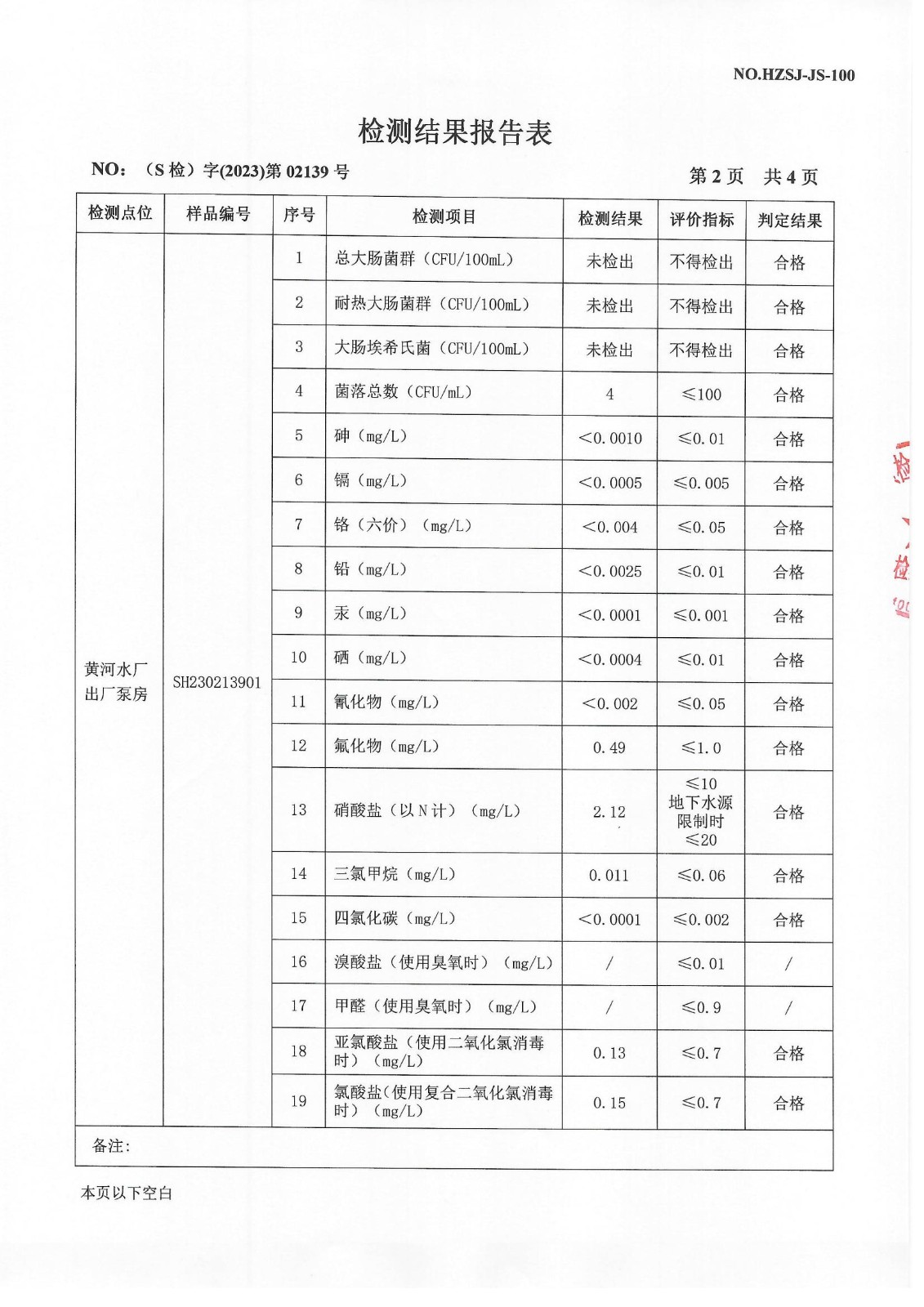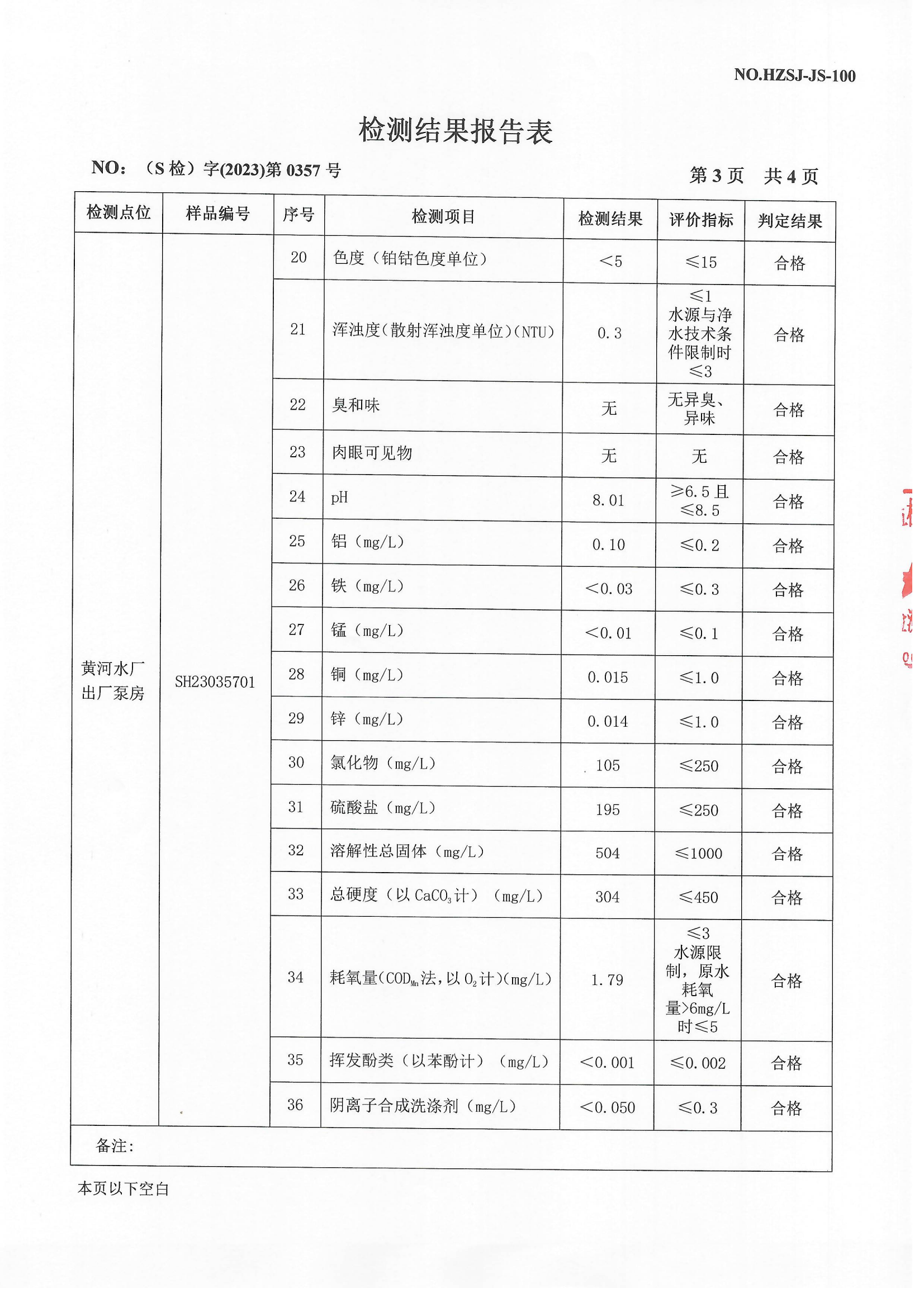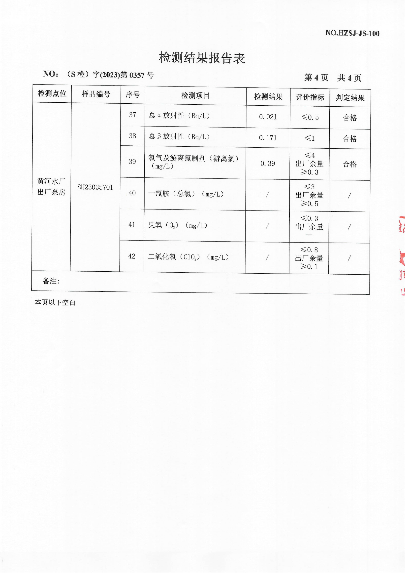 2023年4月出厂水检测报告
