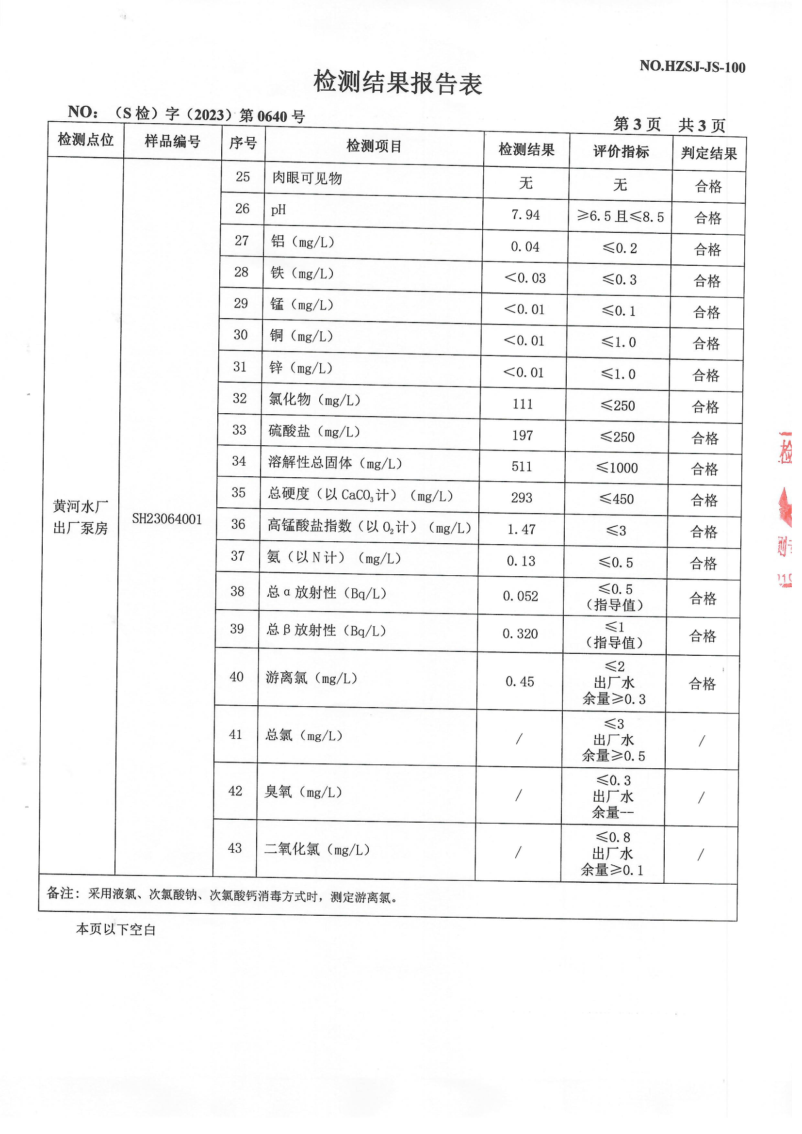 2023年3月出厂水检测报告