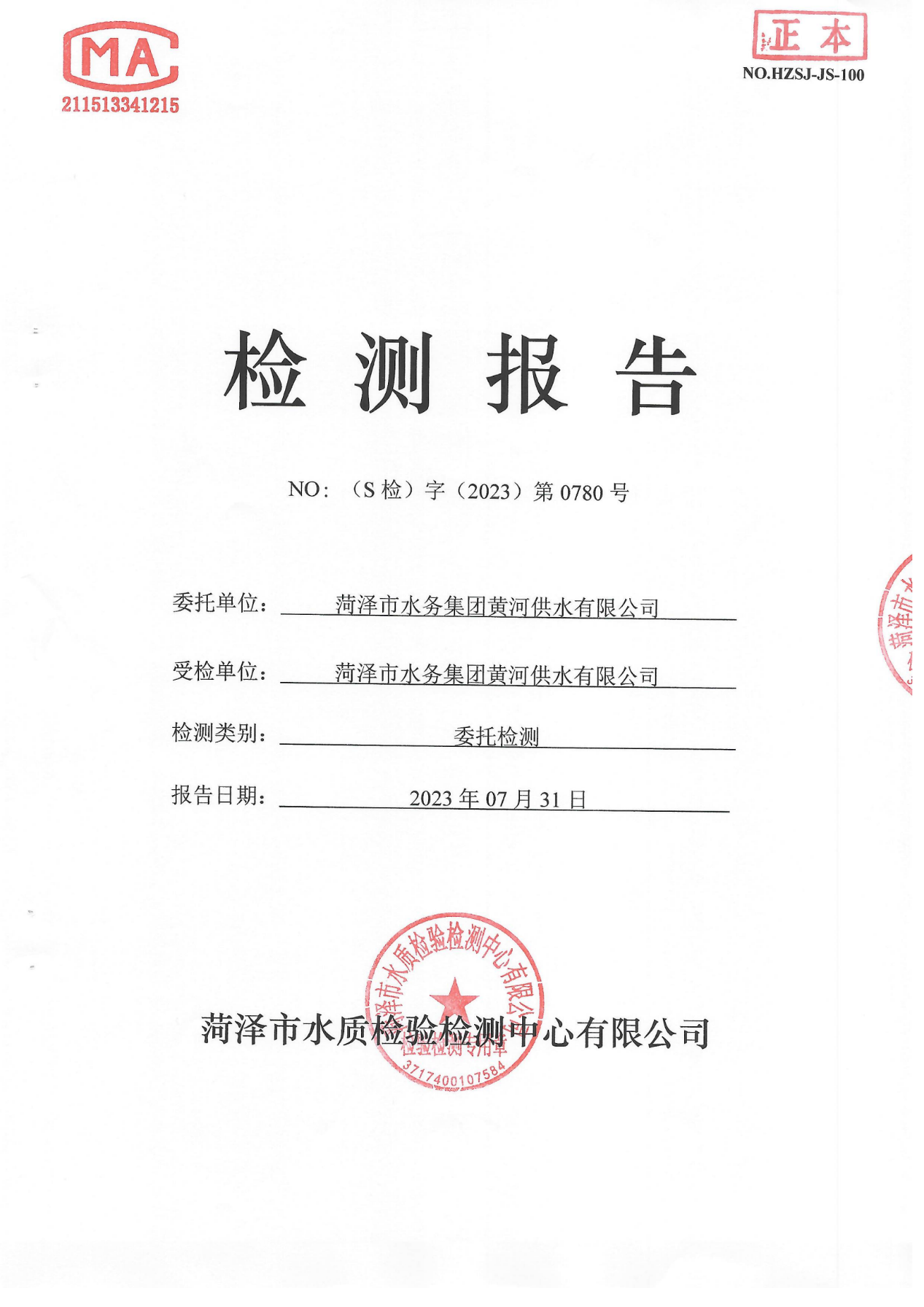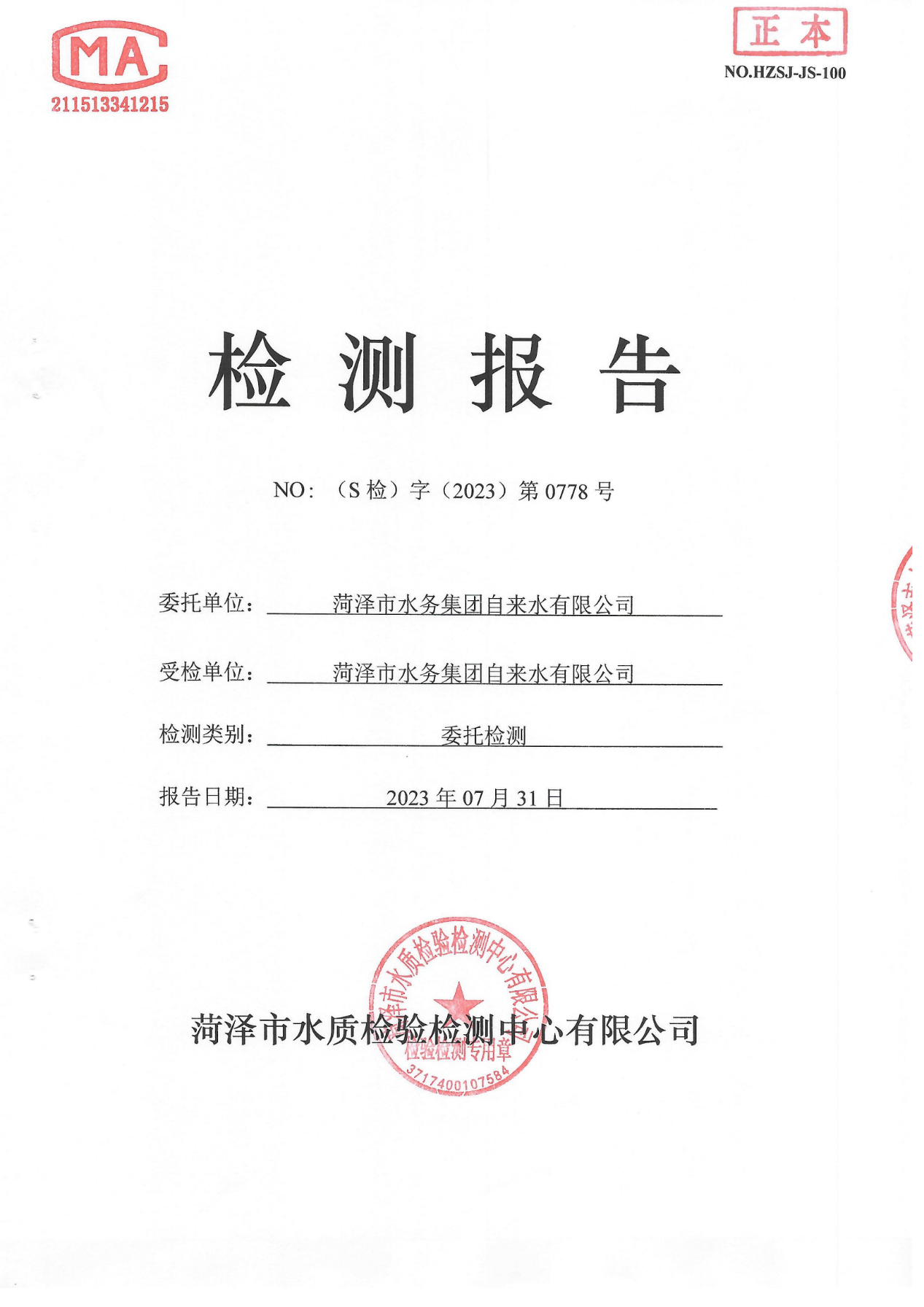 2023年7月管网水检测报告