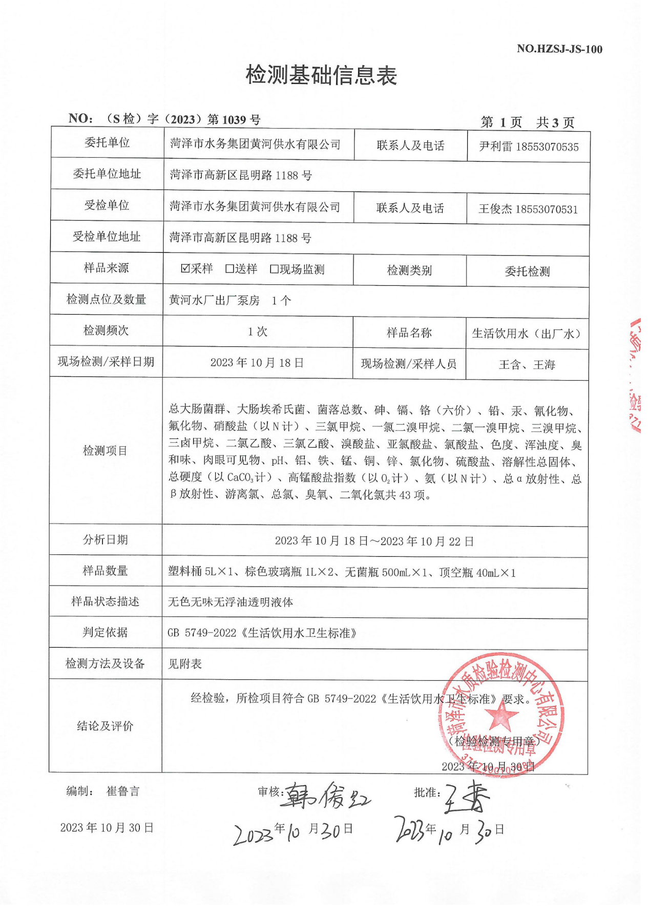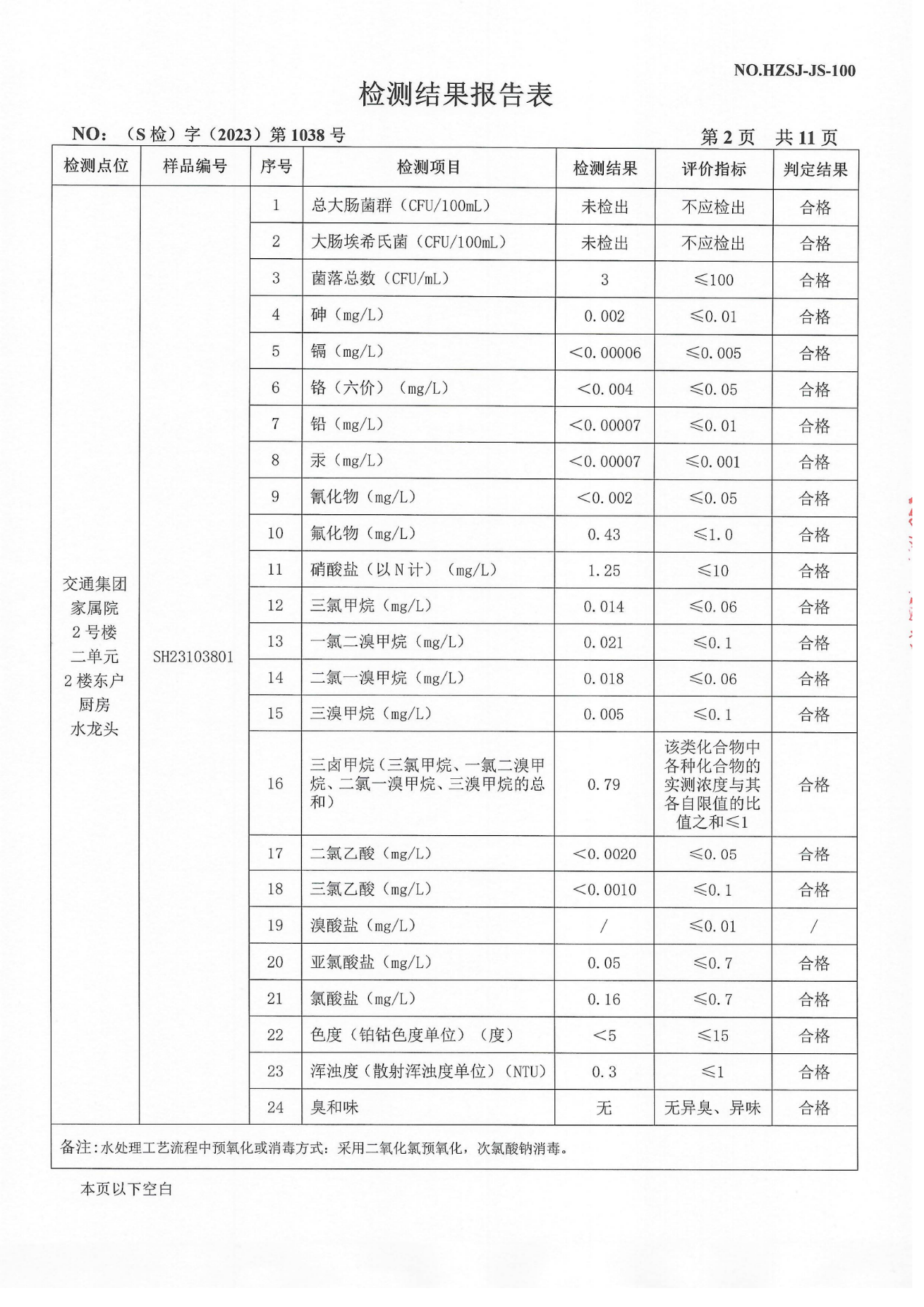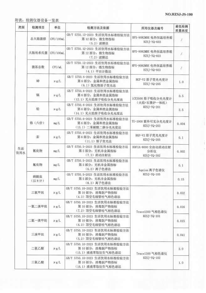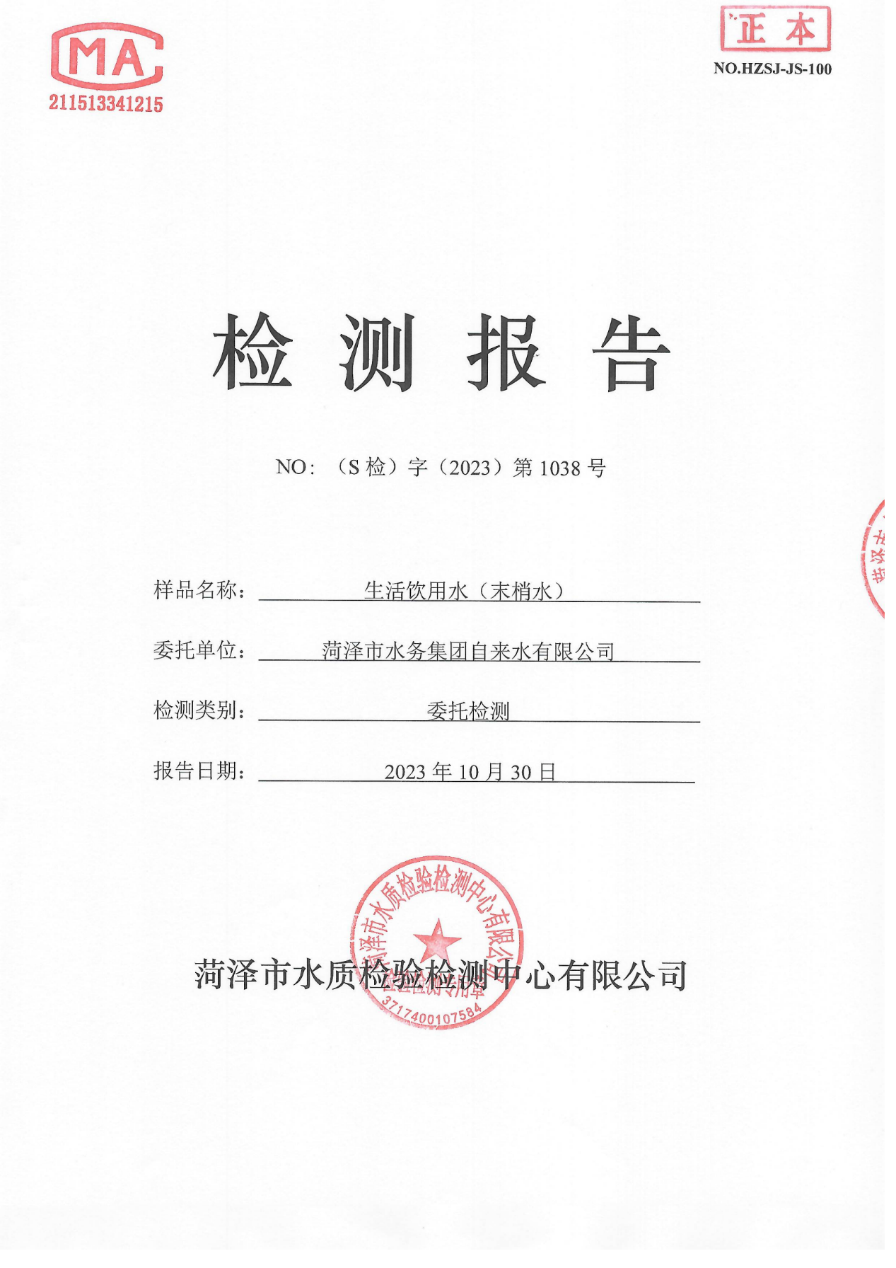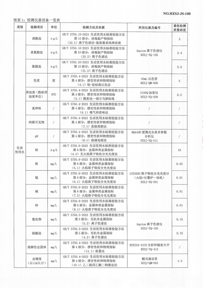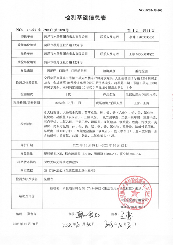 2023年10月管网水检测报告