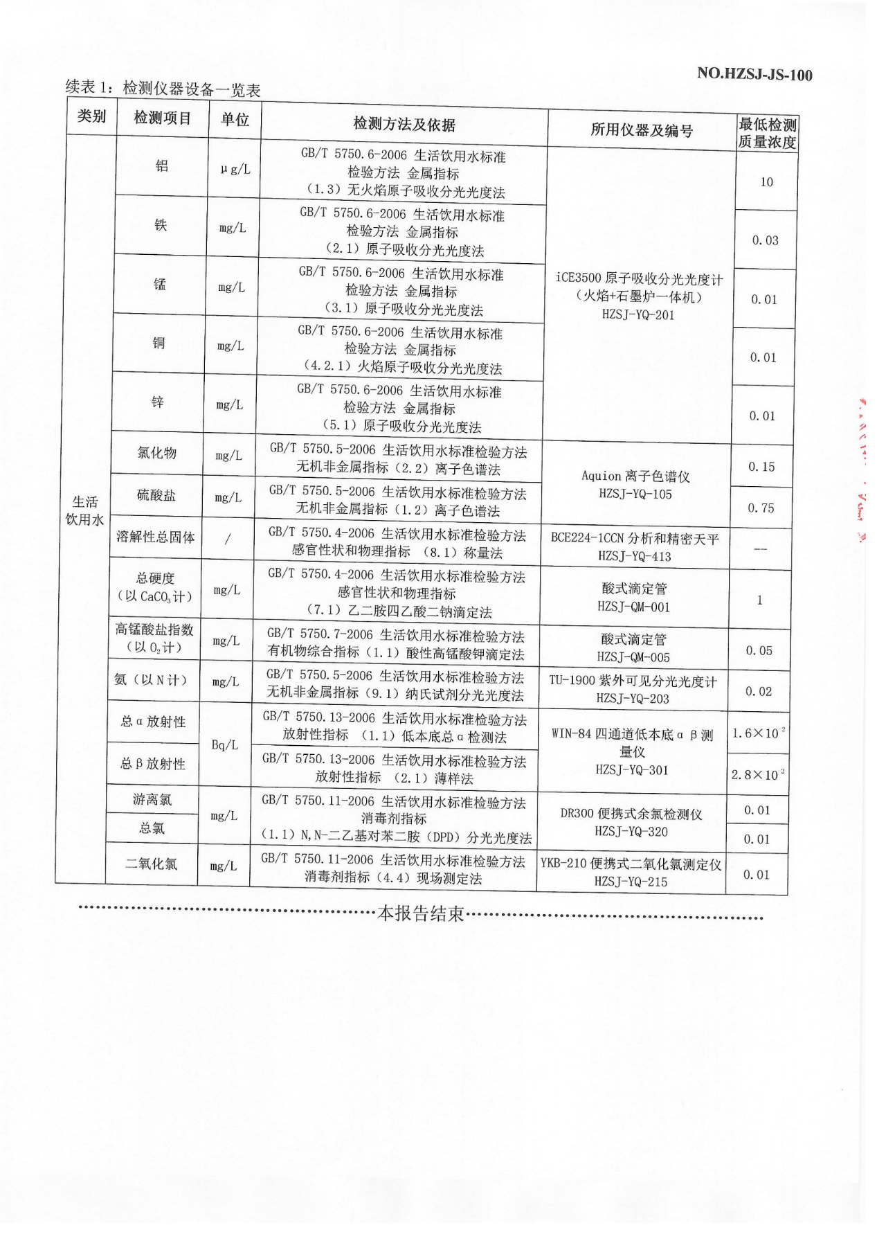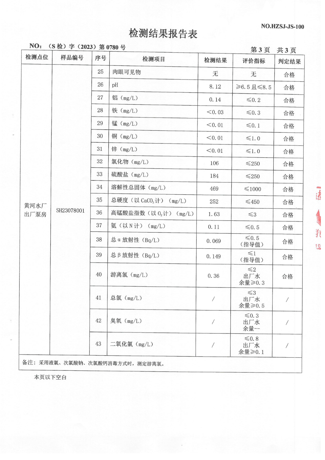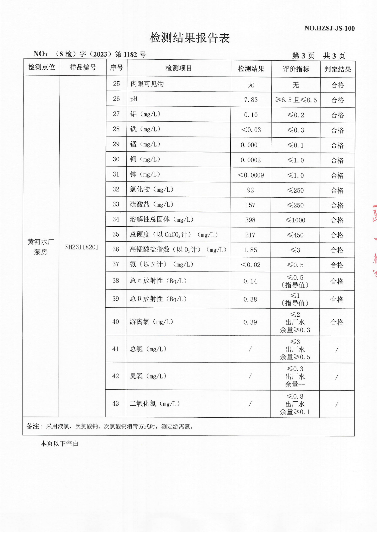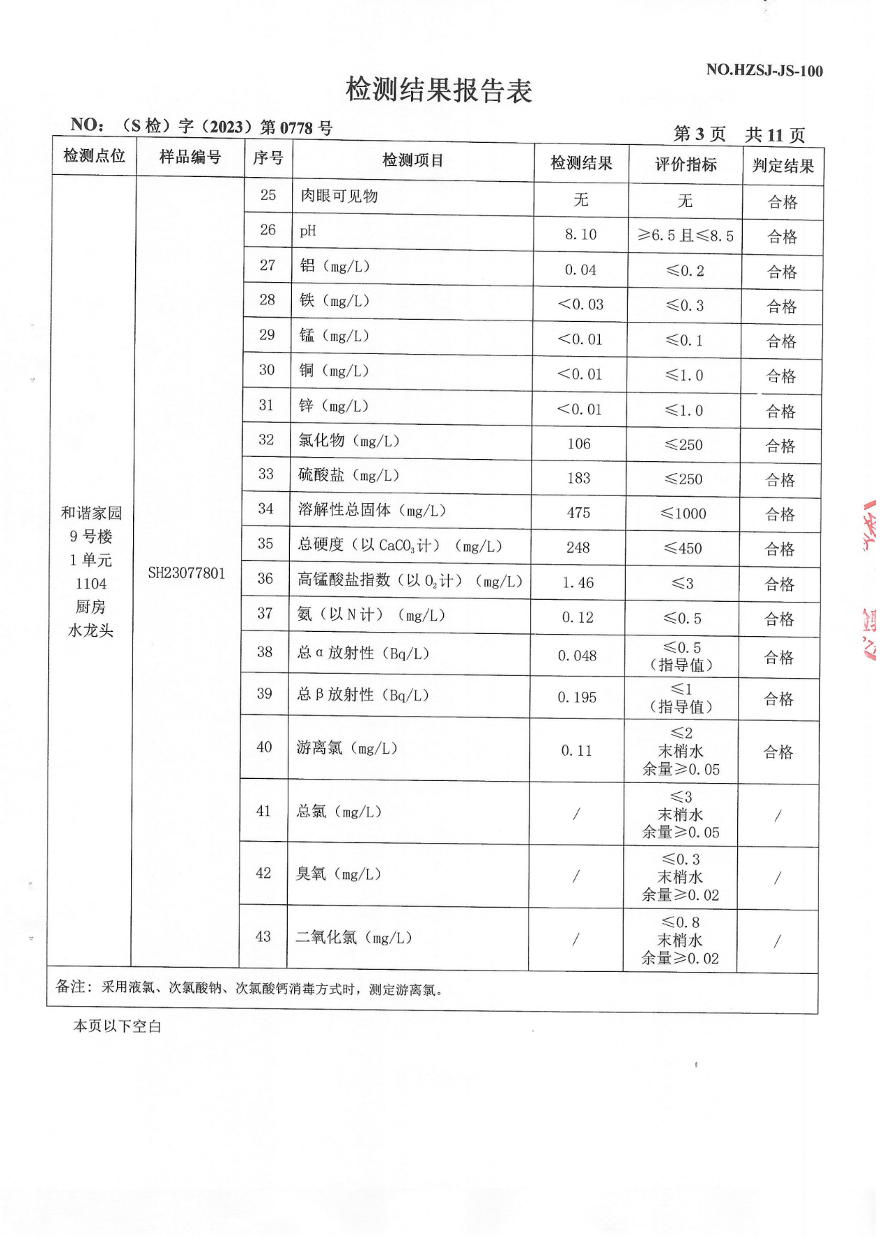 2023年10月管网水检测报告