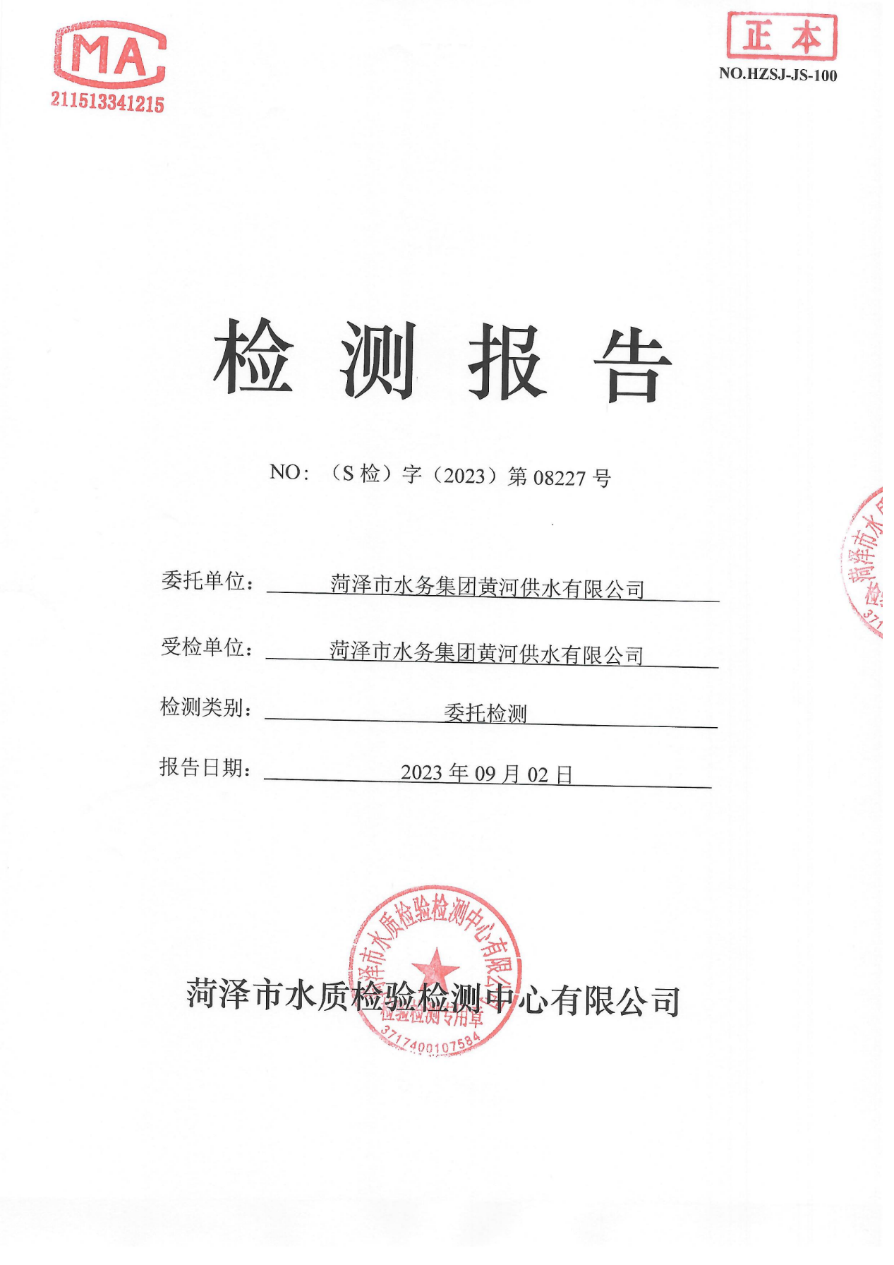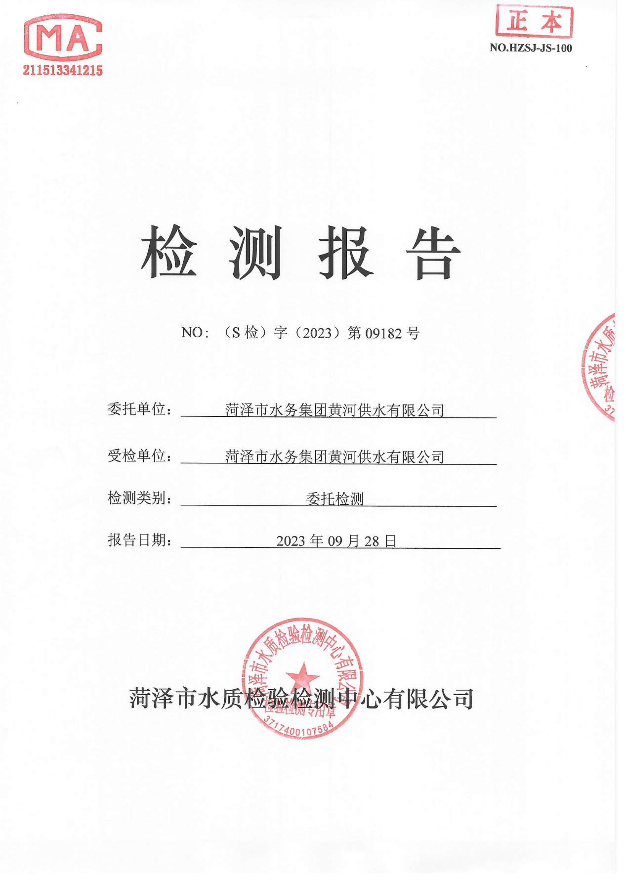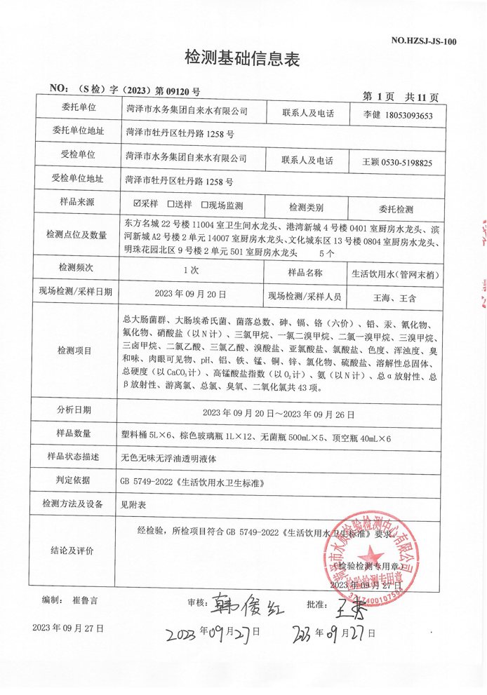 2023年9月管网水检测报告