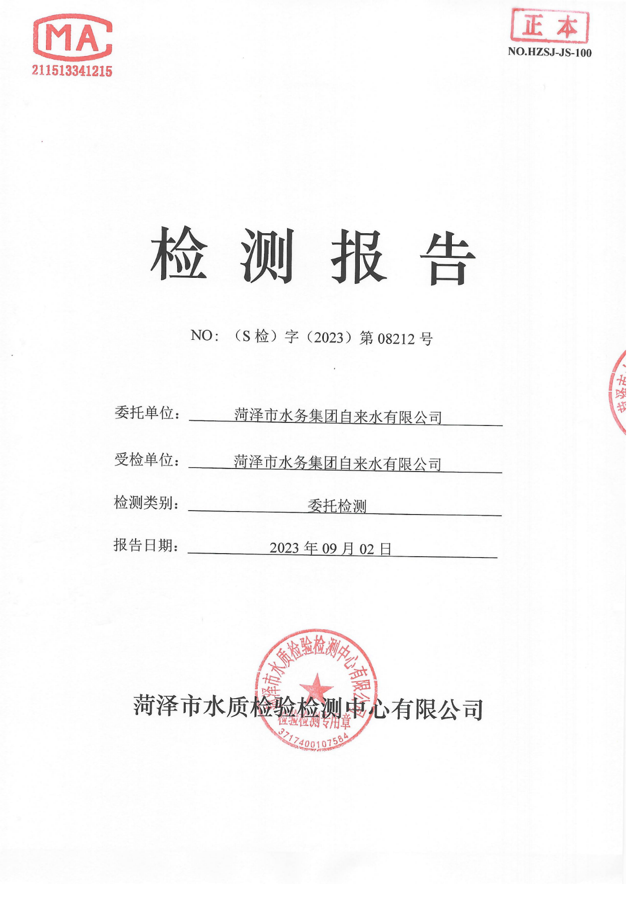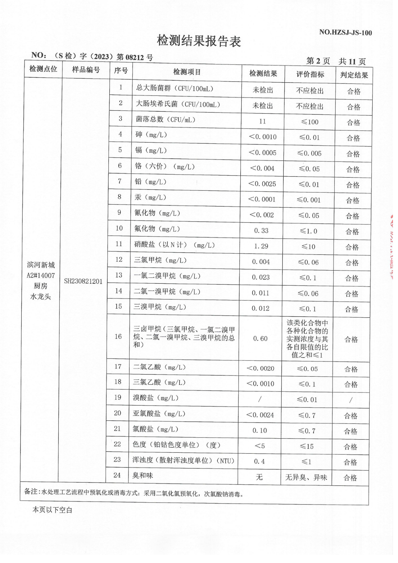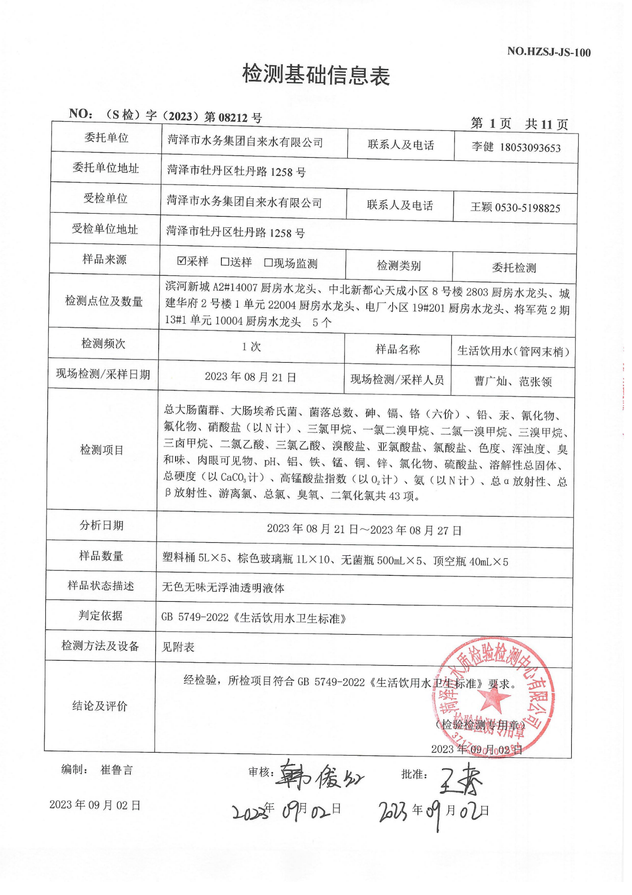 2023年8月管网水检测报告