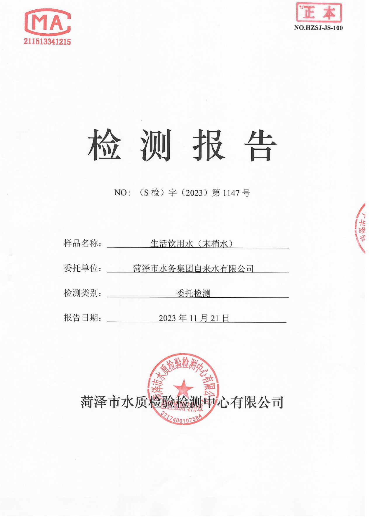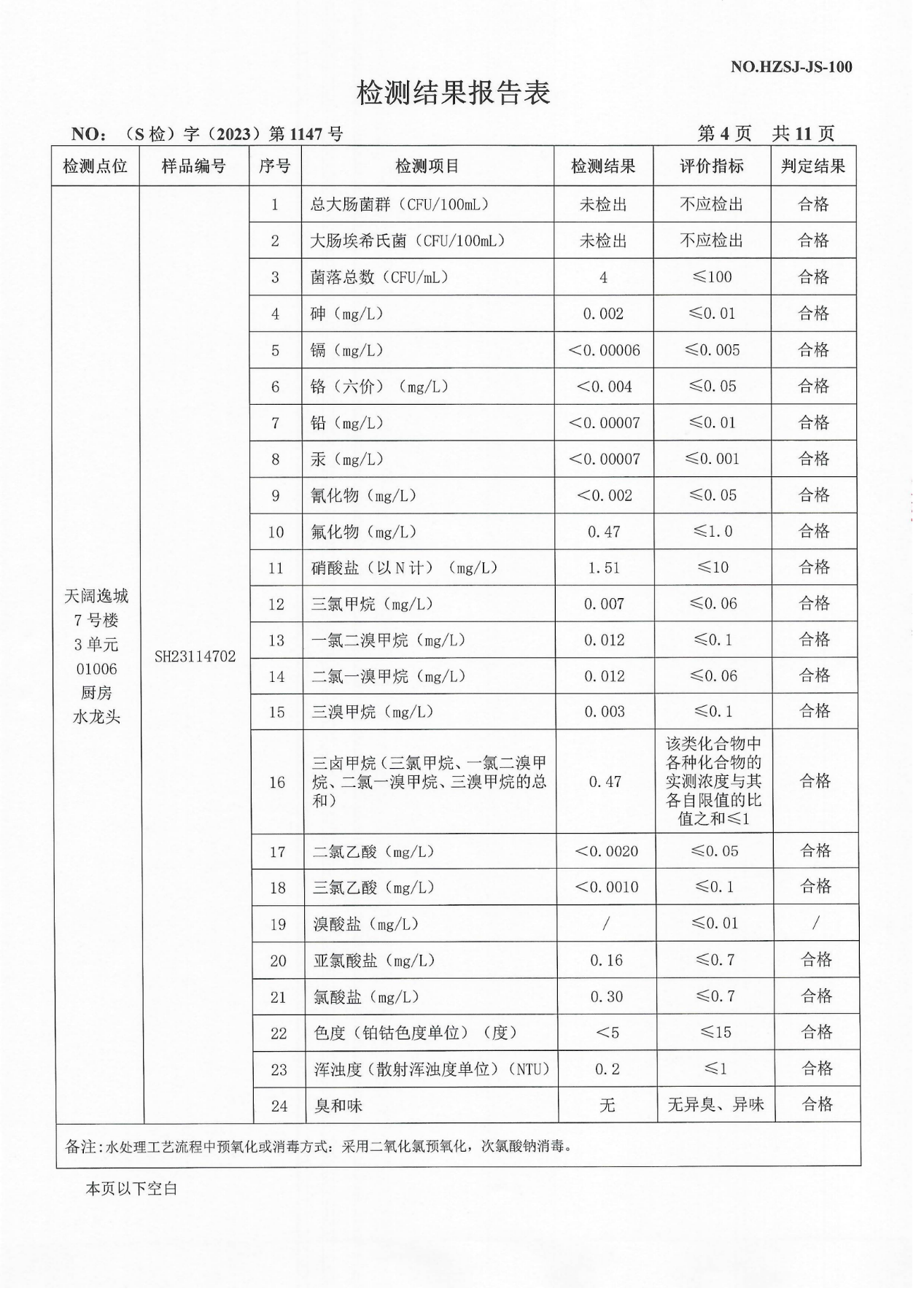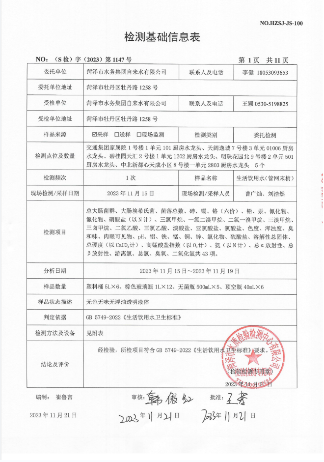 2023年11月管网水检测报告