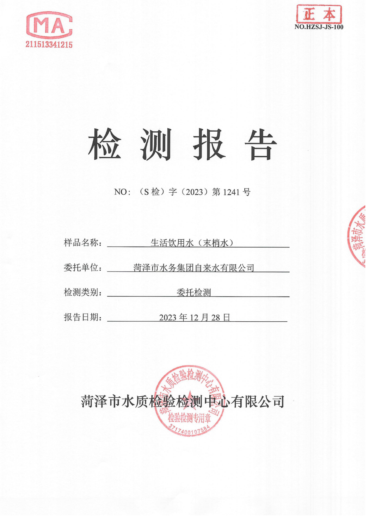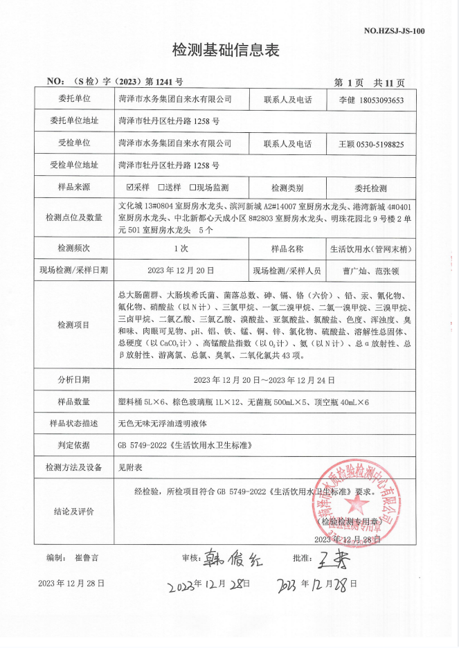 2023年12月管网水检测报告