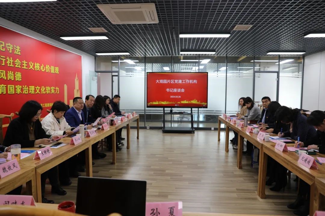 2023年,大观园片区党建工作机构通过召开“贯彻党的二十大精神 推进社会组织高质量发展”“一个聚焦促贯彻 三个抓手促发展”专题党课学习会、主题教育开展情况座谈会等会议,认真开展贯彻习近平新时代中国特色社会主义思想主题教育和落实党的二十大精神;通过举办“走进革命圣地 弘扬延安精神”教育培训班、“协同兴农擘 建设低碳林”植树活动、“党建引领 节水宣传进社区”“廉政教育”“听英雄故事 传八一精神”“重温红色记忆 弘扬奋斗精神”“架党建桥梁 访品质宜居”“探寻大国重器 汲取奋进力量”等活动,持续打造片区党建“1+1”模式,丰富了片区党建活动内涵。
