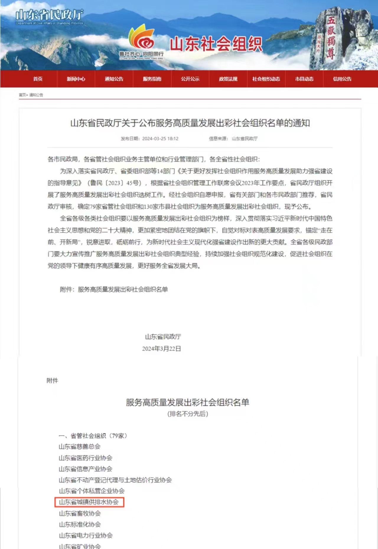此次荣誉的获得,是对协会工作的充分肯定,协会将以此为契机,深入贯彻落实习近平新时代中国特色社会主义思想和党的二十大精神,自觉对标对表高质量发展要求,锚定“走在前、开新局”,不断提升服务水平,为新时代城镇供排水行业作出新的更大贡献。