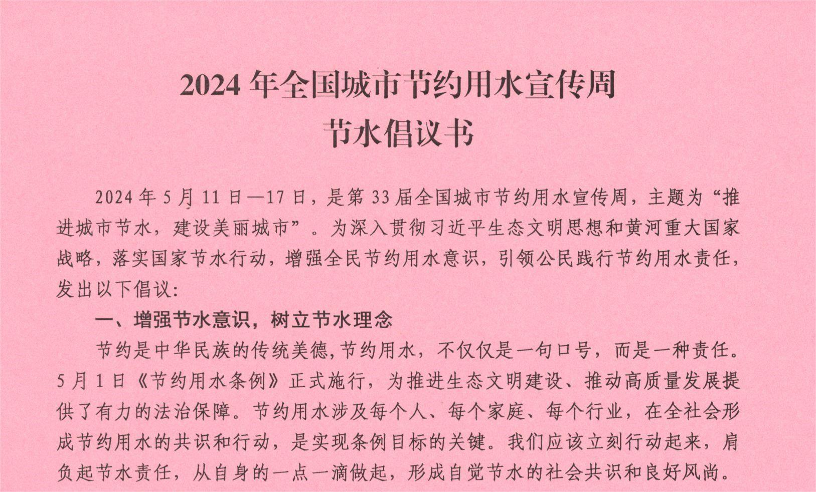 系列一:用节水倡议书吹响城市节约用水的集结号