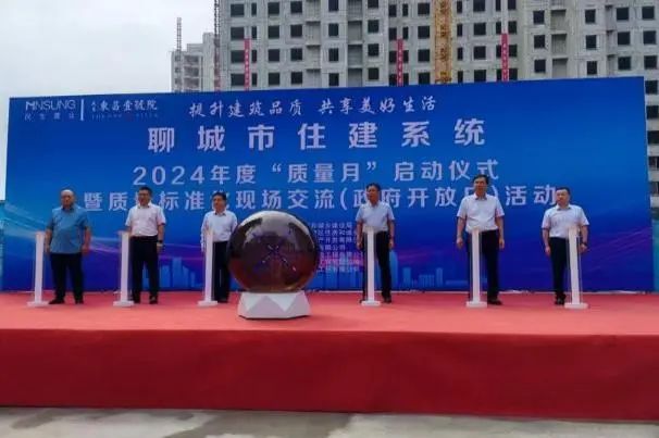 在东昌府区“东昌壹号院”项目组织召开2024年聊城市住建系统“质量月”启动仪式暨建筑品质提升现场交流(政府开放日)活动,通过现场交流和线上直播的方式同步进行。与会人员现场观摩东昌壹号院项目,重点了解内墙石膏抹灰施工工艺及工程施工各阶段标准化做法、交房样板及信息公示展示。聊城市住建局、聊城市历史文化名城保护服务中心相关负责同志,各县(市、区)住房城乡建设局分管负责同志、工程质量主管科室负责同志、质量监督机构主要负责同志和部分行业协会、企业代表、媒体记者共200余人现场参加活动,共5000余人次线上参加直播活动。