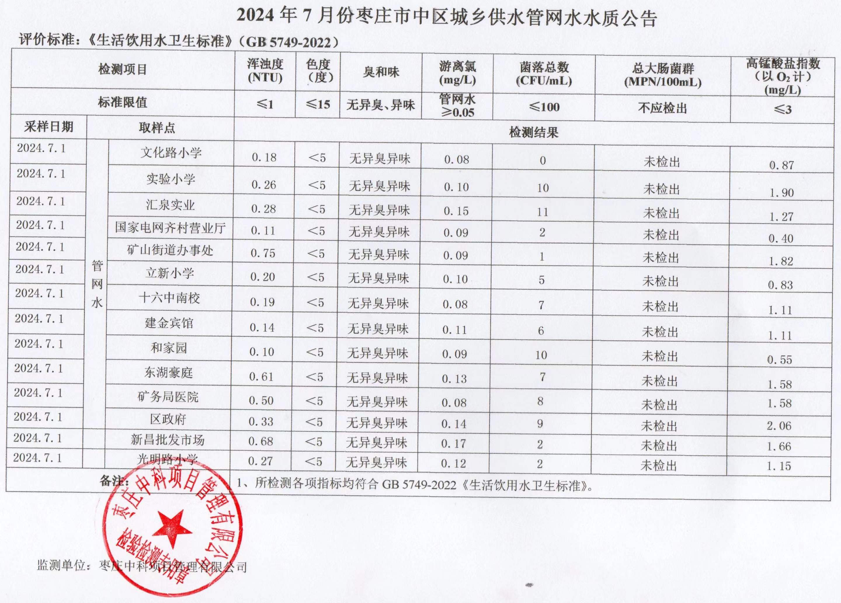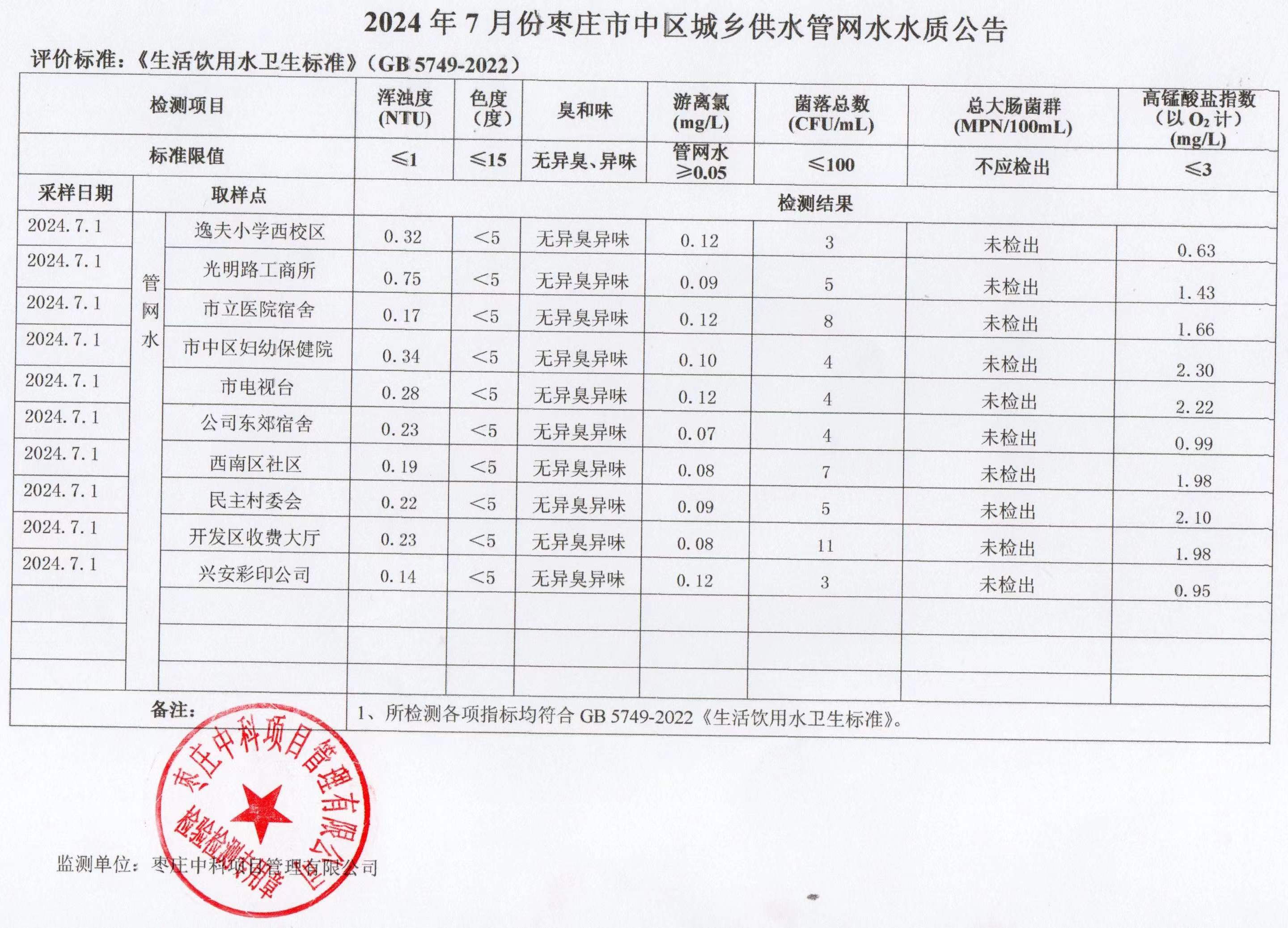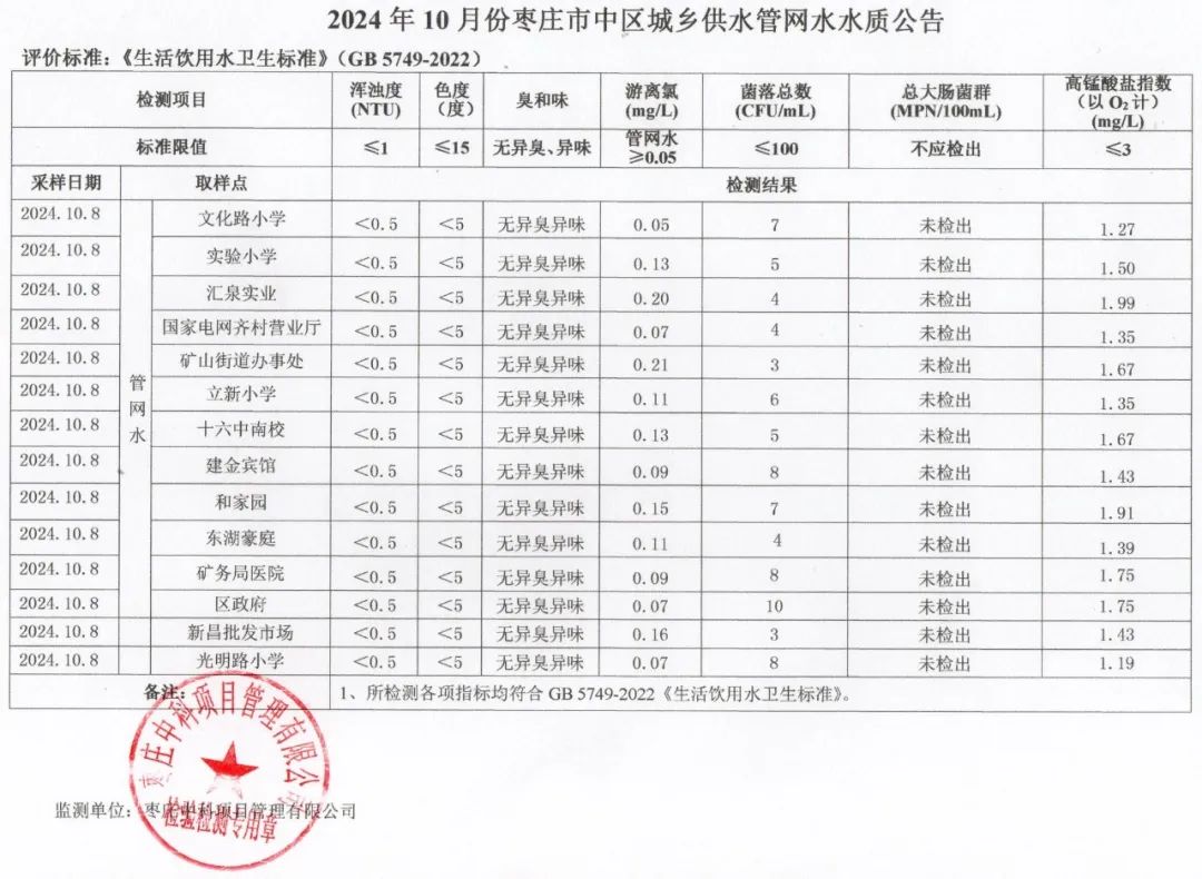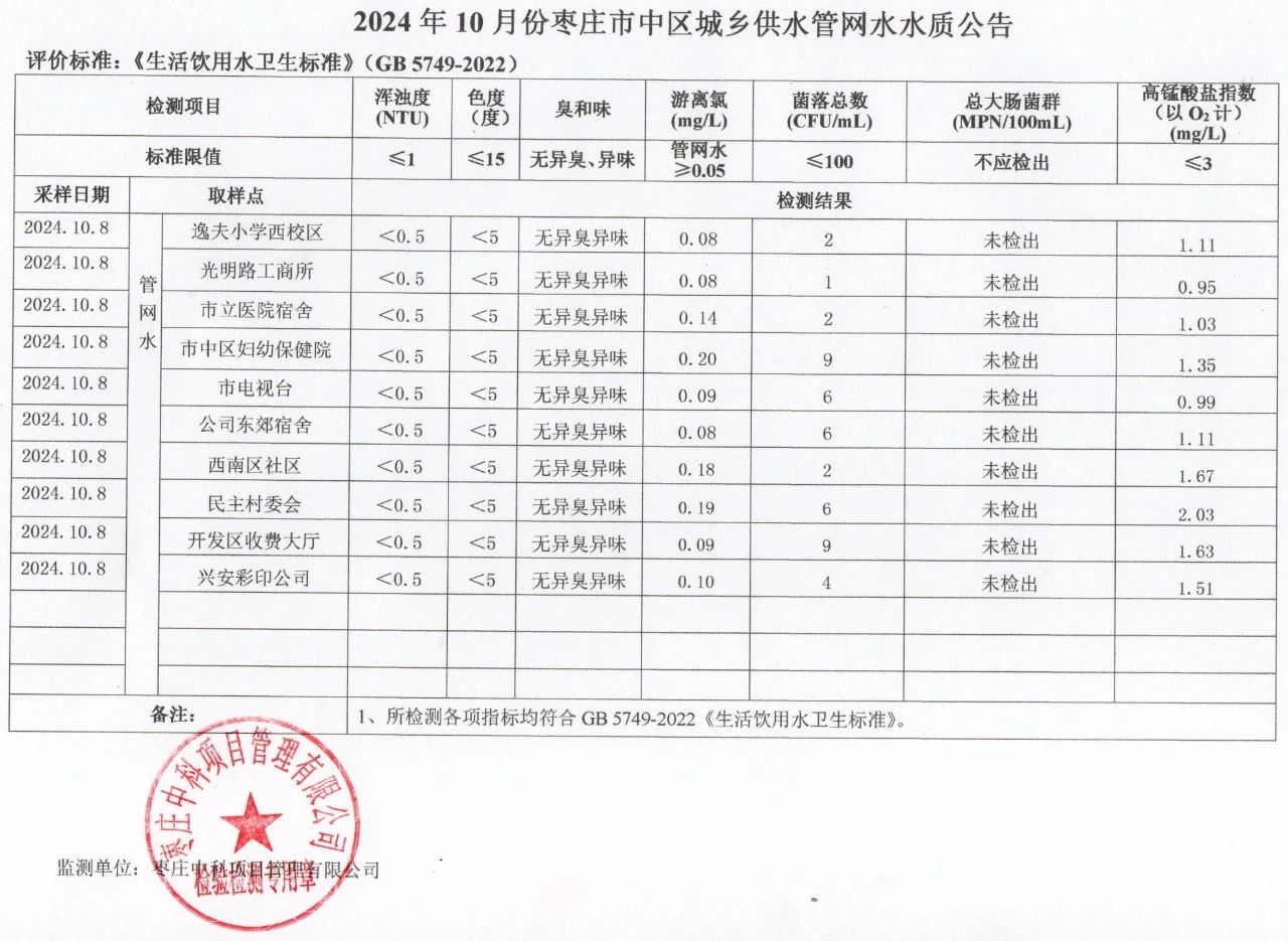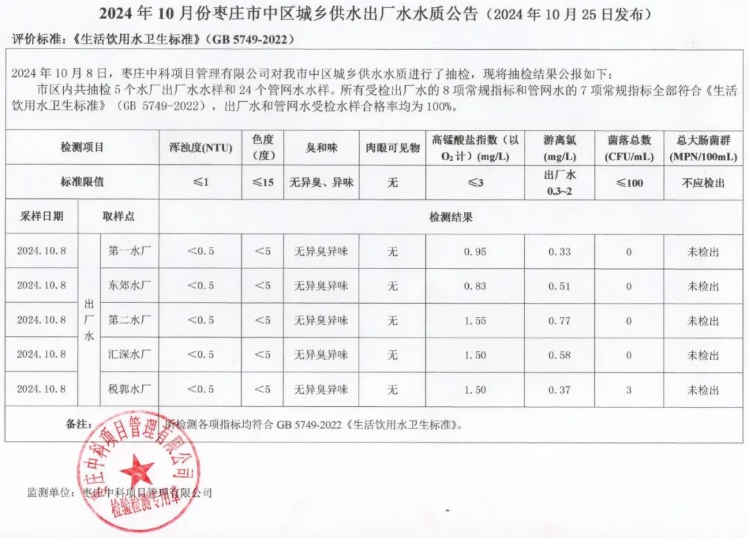 04-枣庄市2024年7月-12月供水水质